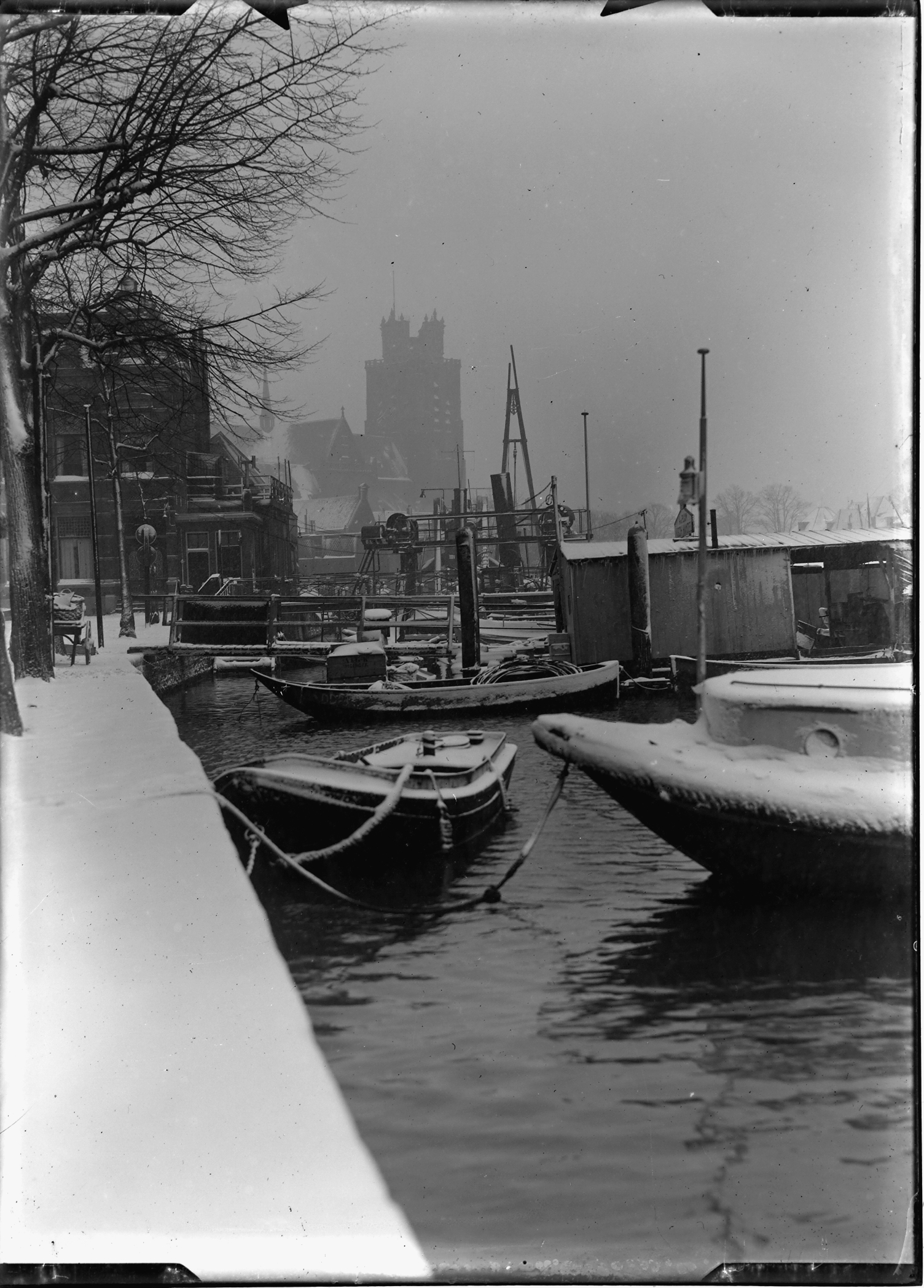 De Nieuwe Haven vanaf de Knolhaven. Links begint de Vleeshouwersstraat, bij de Lange …