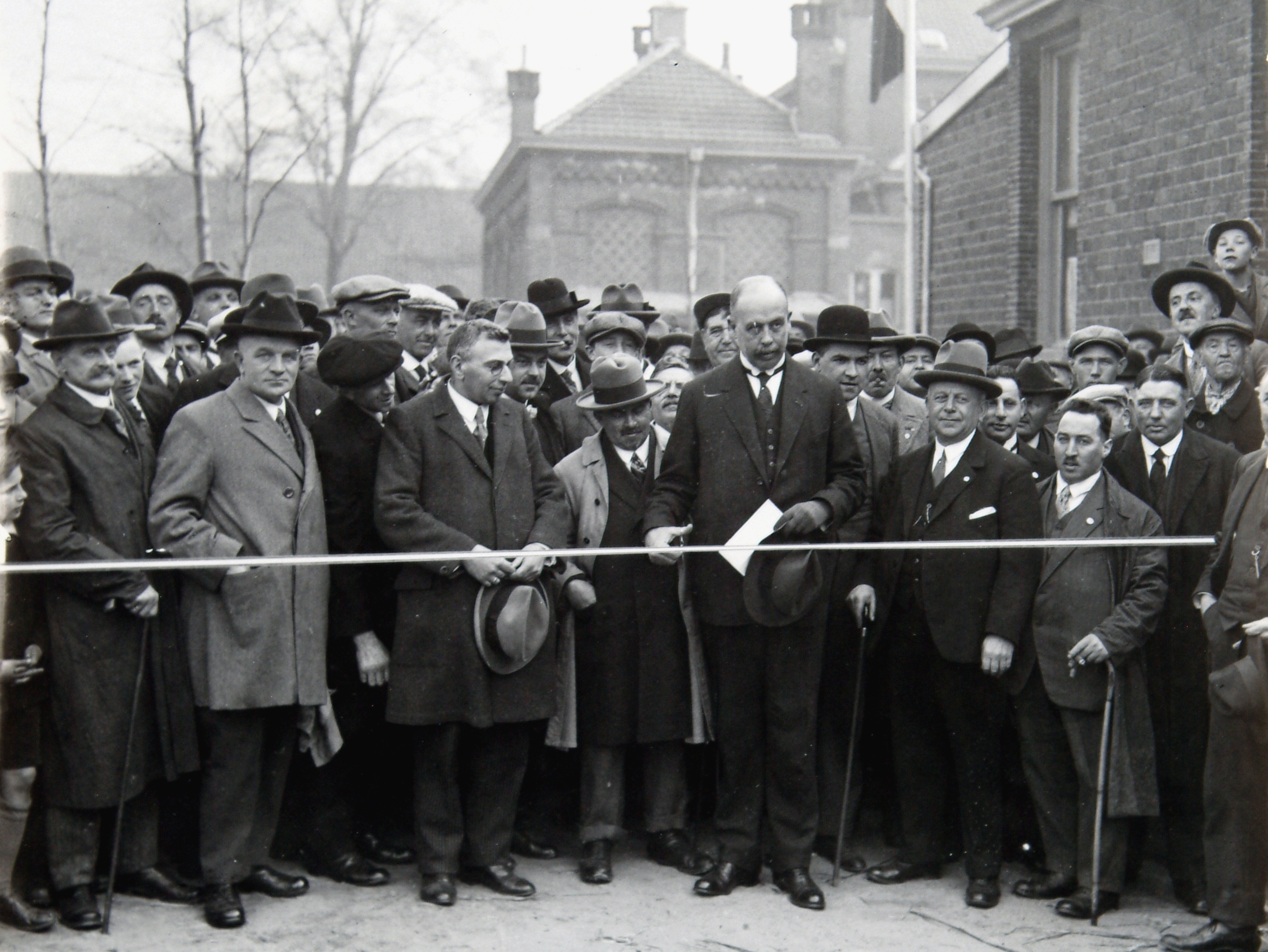 - De Veemarkt achter het Beverwijcksplein wordt geopend door burgemeester De Gaay Fortman. Op de achtergrond het gymnasium aan de Cornelis de Wittstraat.