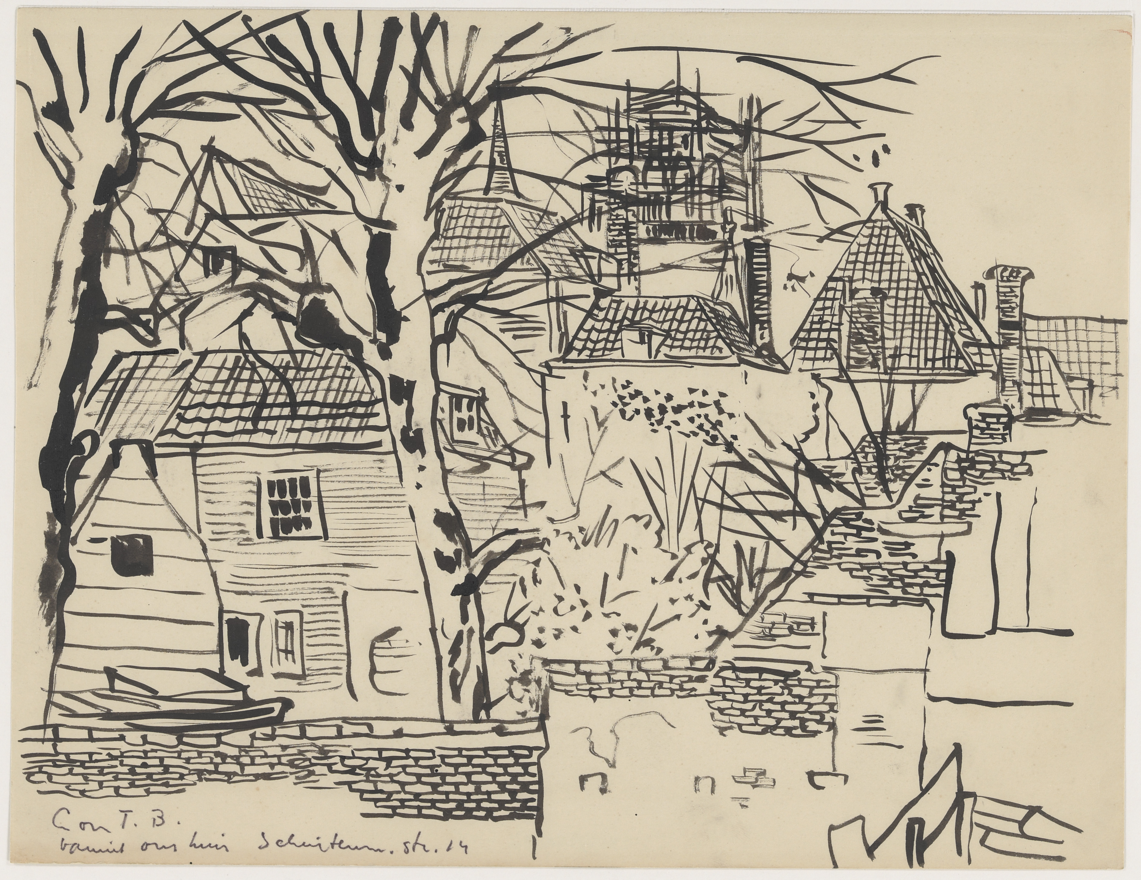 - Uitzicht van Schuitenmakersstraat 14 op de Grote kerk.