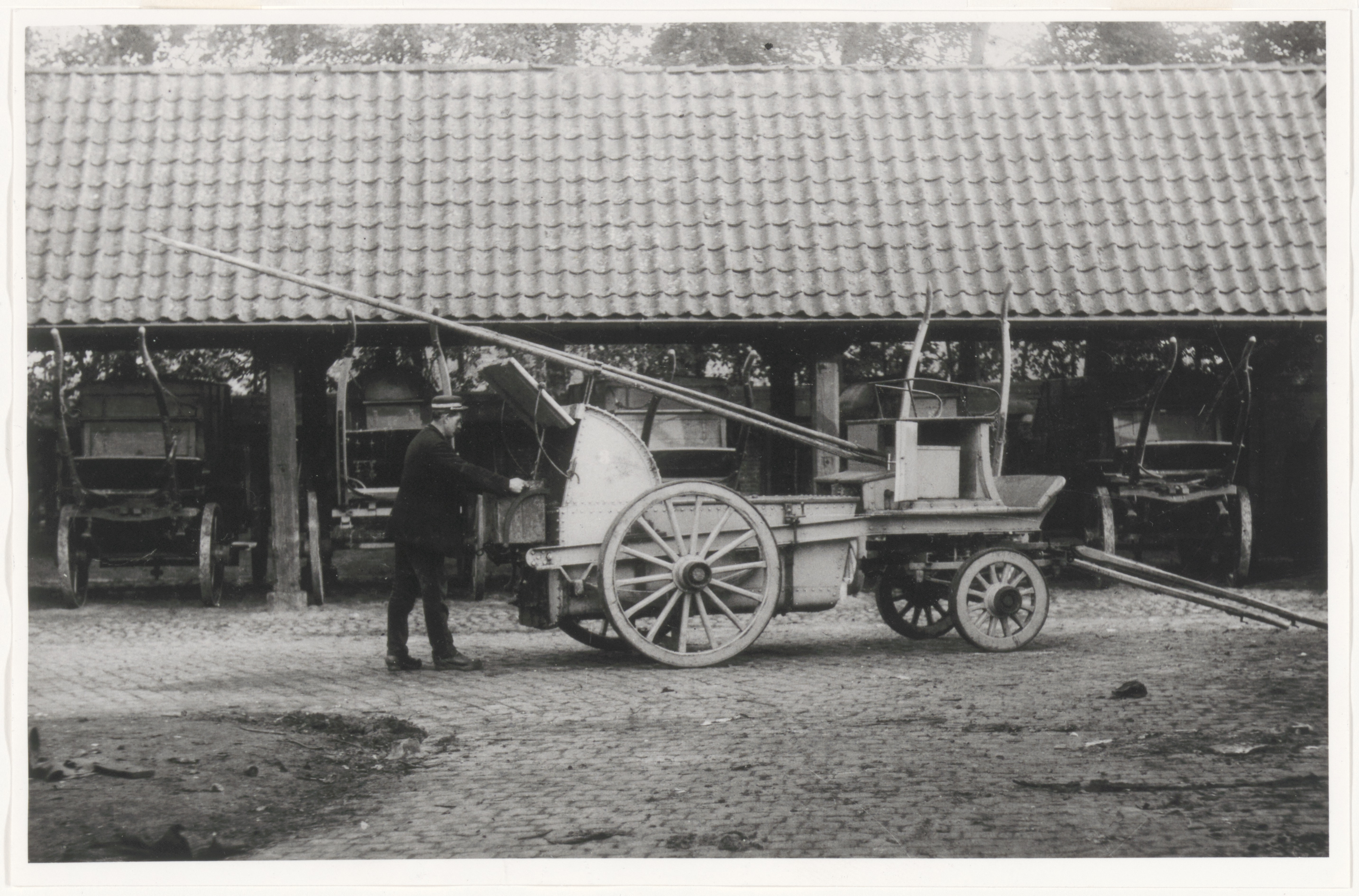 Vuilophaalwagen (zonder paard) en een vuilophaler van de reinigingsdienst voor de …