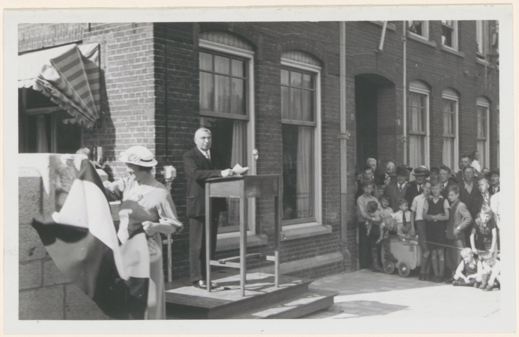 - Wethouder I. van Huiden houdt een toespraak bij de opening van de vernieuwde Leuvebrug. Wethouder mevr. Smit-Pieters van Volkshuisvesting zal beeldhouwwerken van Hildo Krop onthullen.