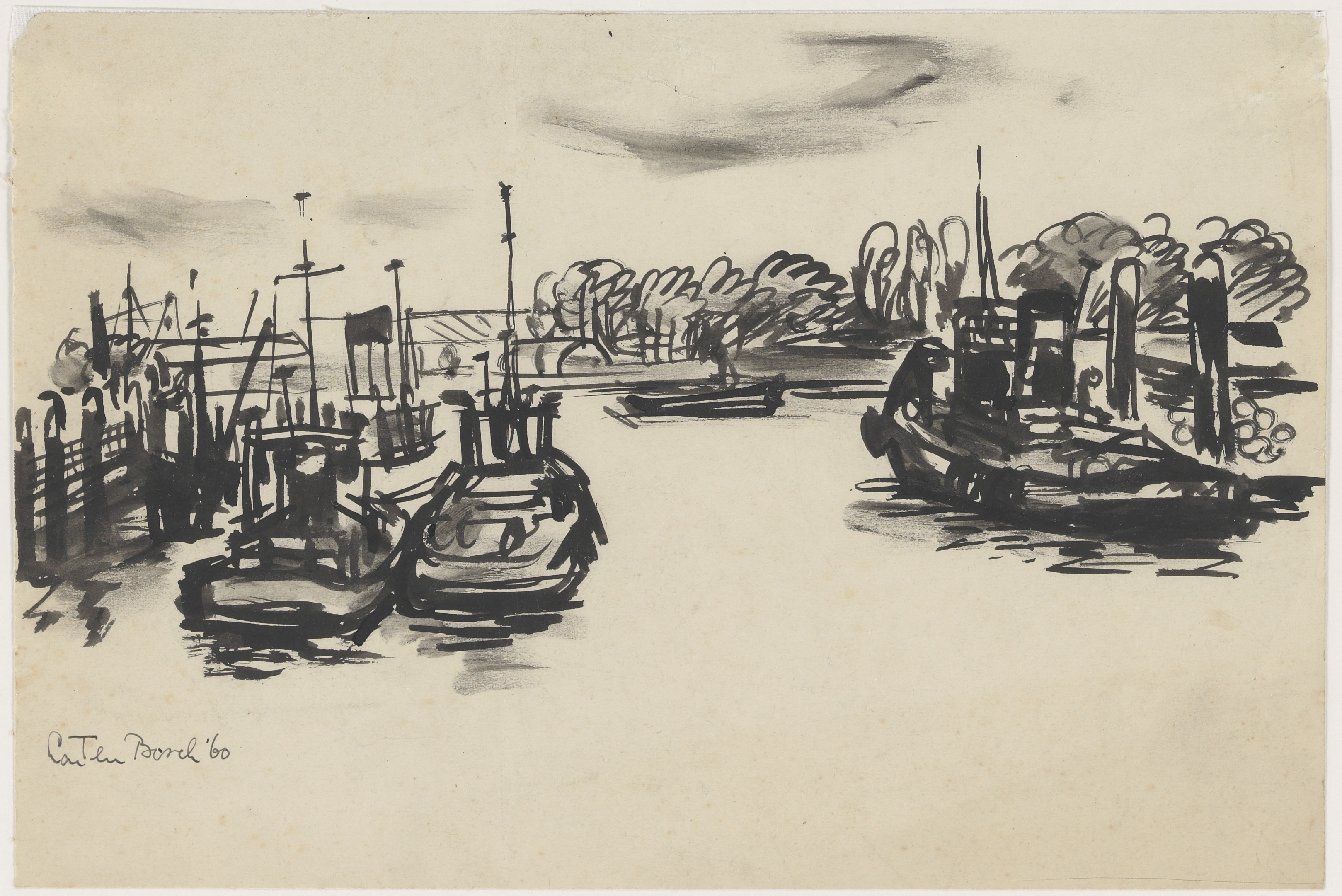 Sleepboten in de Riedijkshaven, gezien naar de Staart.