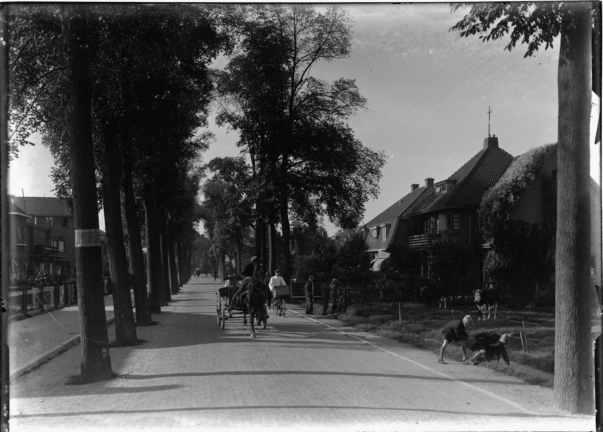- fietsers kinderen koeien paard-en-wagens voetgangers