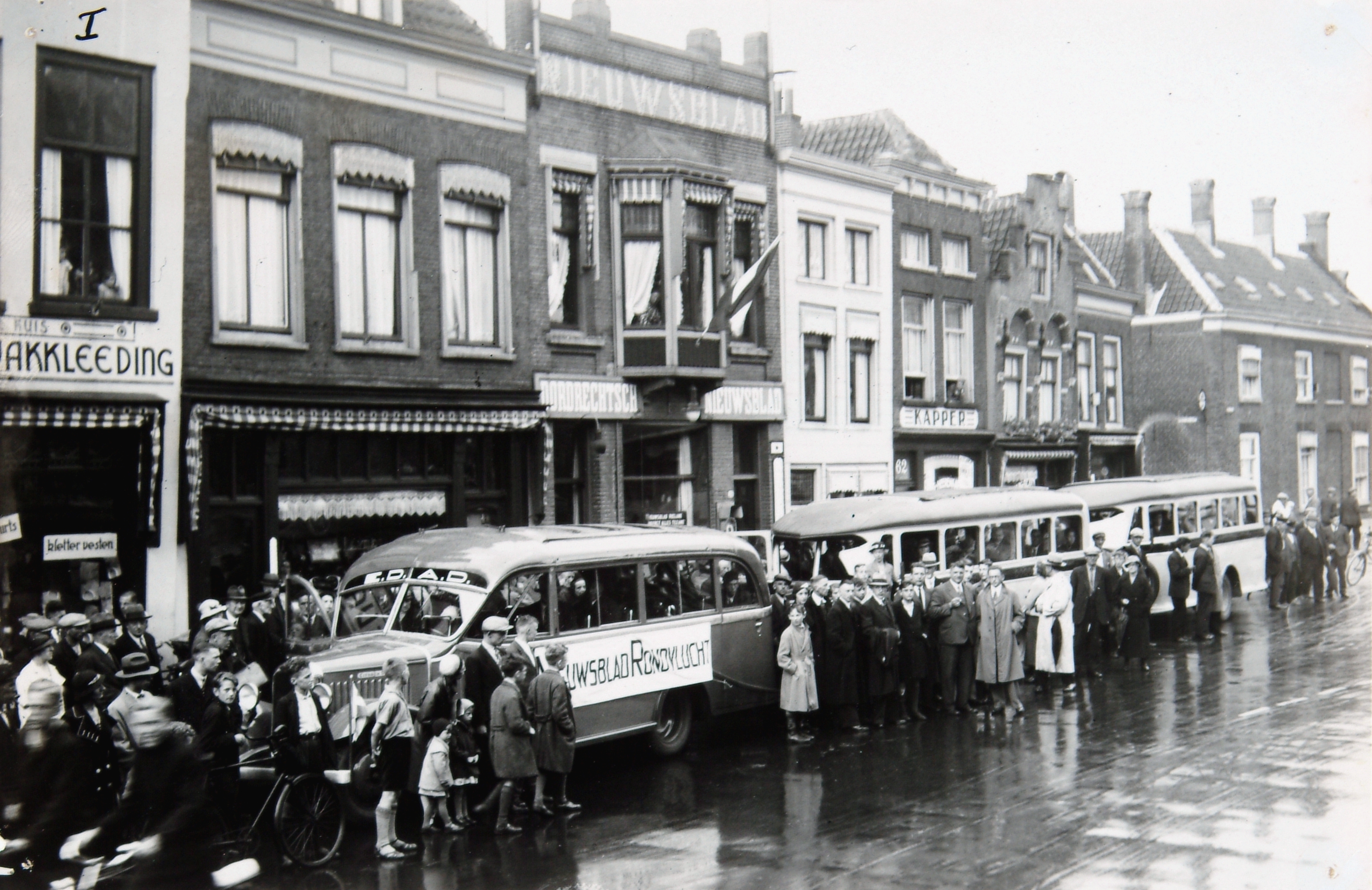 autobussen dagbladen / kranten gevels kledingzaken / modezaken opticiens reizigers