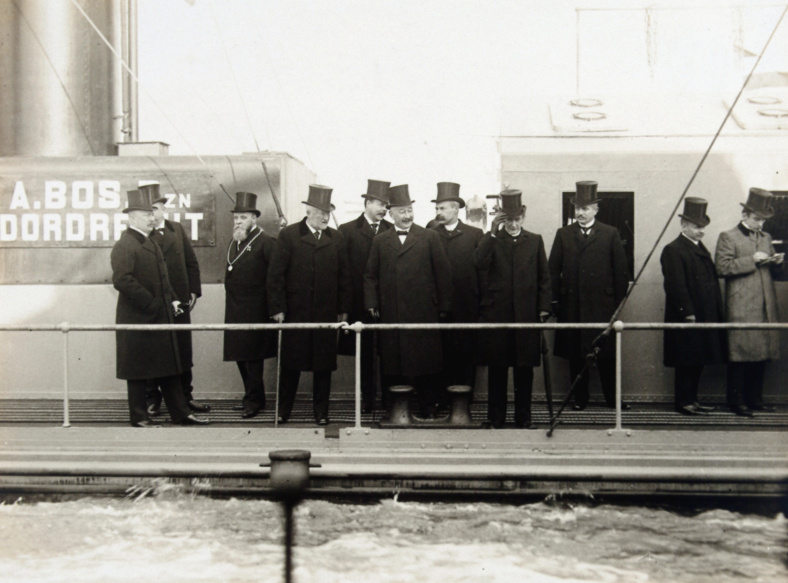 - Opening van de Prins Hendrikbrug. V.l.n.r: Prins Hendrik met A. Bos, burgemeester Wichers, CDK?, wethouder P.J. de Kanther, directeur Gemeentewerken Van Ruisen , wethouder Hordijk, secretaris Van Houten, verslaggever A. van Son.