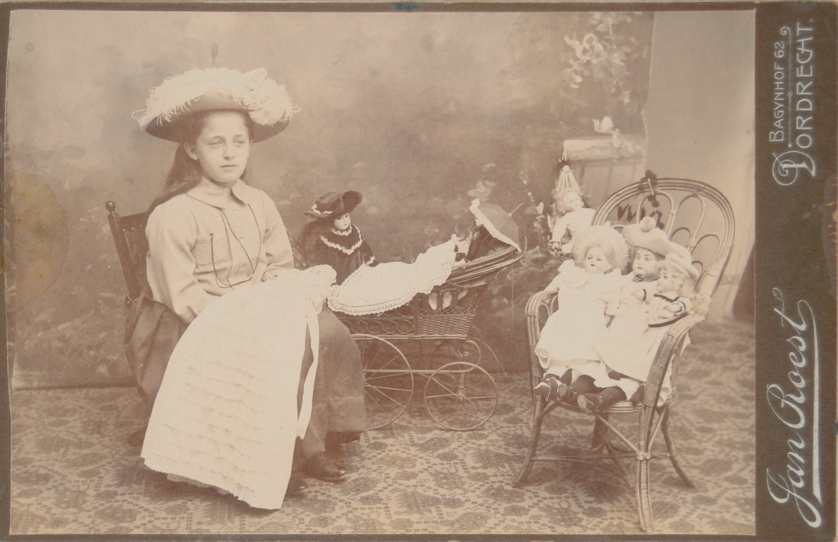 - Portret van Toosje de Vries met haar poppen op haar 10e verjaardag