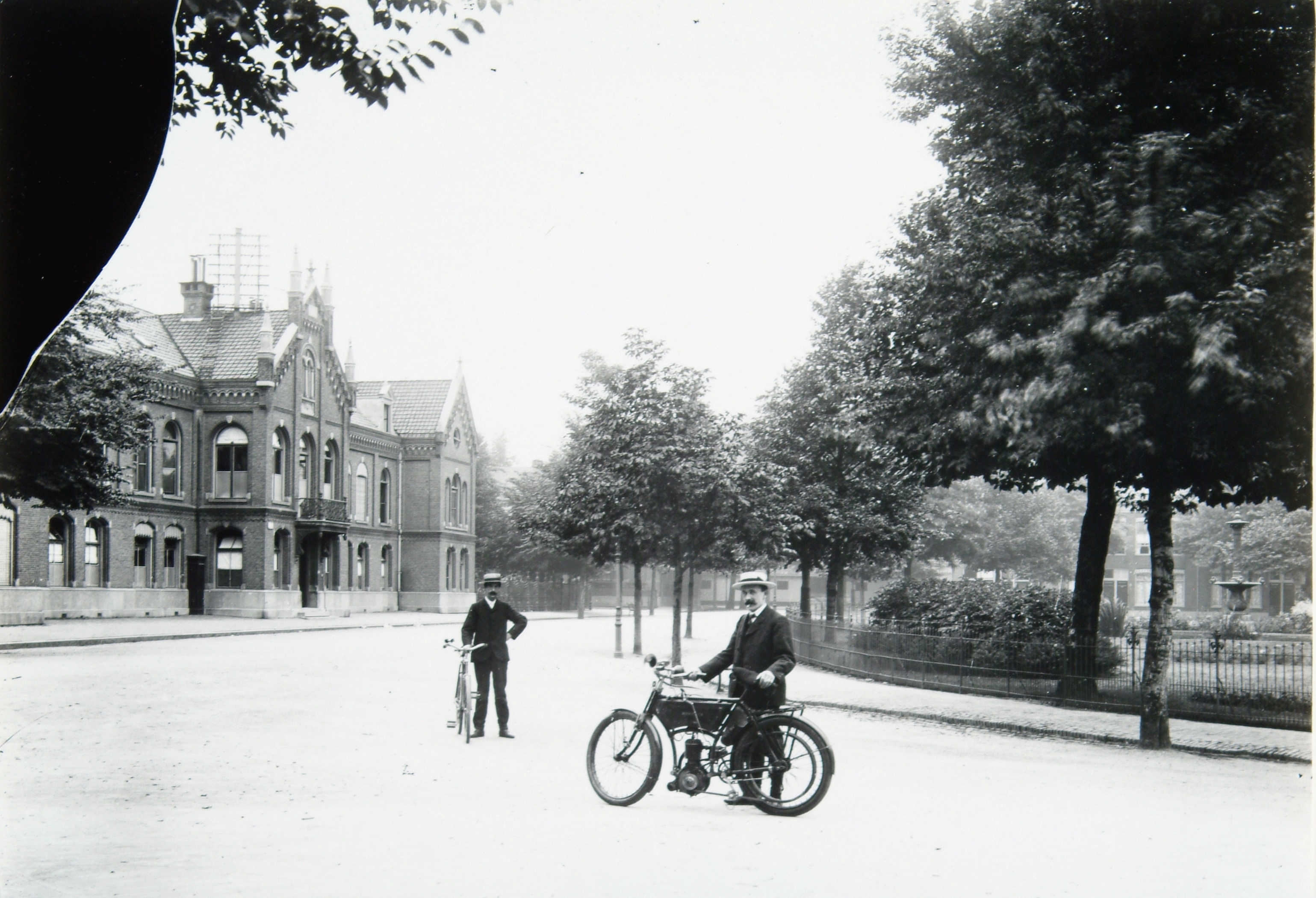 Het is namelijk de Rijwielfabriekant H. van Randwijk & Co. die in de Dordrechtsche Courant van 20-08-1898 een advertentie plaatst welke gericht is aan "H.H. RIJWIELHANDELAREN", met de volgende tekst: " Door dezen maken wij U bekend dat wij W. v. d. WIJNGAARD om bijzondere redenen, welke wij liefst niet publiceeren, als Meester uit onze Rijwielfabriek ontslagen hebben. Nadere informatiën te bekomen Fabriek Wijnstraat 51" Je zou toch bijna denken dat zijn oude werkgever het er moeilijk mee heeft gehad dat zijn "Meester" te kennen heeft gegeven voor zich zelf te gaan beginnen! Of er speelde iets anders ... ik was er niet bij. In het adresboek van 1899 zie ik voor het eerst de rijwielhandelaar W. van den Wijngaard, Oudenhovenstraat 24 opduiken (nu 44/46). Hij adverteerd in het adresboek voor zijn Rijwielhandel & Reparatie-Inrichting. Hij vond het ook belangrijk om nog even extra te vermelden dat zijn zaak zich op de hoek met het Beverwijcksplein bevond. In het adresboek van 1904 blijkt hij zijn handel aanzienlijk uitgebreid te hebben. Advertentie adresboek 1904: "W. VAN DEN WIJNGAARD, BEVERWIJCKSPLEIN 20. SIMPLEX RIJWIELEN, MOTOR en AUTOMOBIELEN, SPORT-ARTIKELEN." Hij is dus ook intussen verhuist naar nummer 20, het huidige pand van Van Rees. Ook hier blijft hij waarde hechten aan het Beverwijcksplein uiteraard omdat het onder de Dordtenaren bekender zal zijn dan de Oudenhovenstraat. Uit de Dordrechtsche Courant van 14-05-1902: "De heer W. van den Wijngaard heeft zijn rijwiel-magazijn overgebracht van Oudenhovenstraat 24 naar n°. 20. Valt zijn ruime winkel met etalage van rijwielen, sport-artikelen, naai-machines en wat daartoe behoort beter in het oog van het Beverwijckplein, het openbaar oefeningsterrein der wielrijders, daarachter is thans eene kamer ingericht voor eerstbeginnenden, die zich zonder het minste gevaar kunnen oefenen in het zitten op het zadel, het trappen en sturen. Het rijwiel wordt daartoe n.l. vast gezet in een stelling, terwijl de wielen loopen over twee houten cylinders in den grond, die de beweging der wielen mogelijk maken. Verder vindt men daar een ruime werkplaats voor alle herstellingen aan rijwielen, naaimachines enz., alsmede voor het vernikkelen, vergulden en emailleeren." Uit de Dordrechtsche Courant van 22-10-1902: Heden ochtend omstreeks 7 uur ontstond een begin van brand op den zolder, gedeeltelijk dienende tot werk- en bergplaats van den rijwielhandelaar W. van den Wijngaard, aan de Oudenhovenstraat alhier, vermoedelijk ten gevolge van het vallen van een lucifer in een daar liggende partij houtwol. Daar zich een geduchte rook ontwikkelde, kon men het vuur niet met emmers water blusschen. Spoedig was echter de slangenwagen der politie aanwezig, dat daarin binnen enkele minuten slaagde, zoodat er bijna geen andere dan waterschade is aangericht. De betrokken kring der brandweer behoefde niet opgeroepen te worden. Na 1904 zie ik verder geen reclame-uitingen meer onder de naam W. van den Wijngaard. Wél als een filiaal onder de naam "SIMPLEX" in de Dordrechtsche Courant van 17-05-1906, 4-06-1906 en 11-06-1906. (Machine-, rijwiel- en automobielenfabriek „Simplex”, Overtoom 271, Amsterdam.) In de adresboeken na 1911 kom ik Van Den Wijngaard niet meer tegen als rijwielhandelaar aan de Oudenhovenstraat. Dan het bericht in de Dordrechtsche Courant van 3-09-1912 wat melding maakt van een OPENBARE VRIJWILLIGE VERKOOPING. De Notaris JAN DE BOER, zal op DONDERDAGEN 19 en 26 SEPTEMBER 1912, telkens ’s avonds 7 ure, in het Nederlandsch Koffiehuis ZAHN‚ over het Scheffersplein te Dordrecht, Veilen en Verkoopen : Een bijzonder goed onderhouden huis‚ waarin RIJWIELZAAK wordt gedreven, met BOVENHUIS en ERF te Dordrecht, aan de Oudenhovenstraat en het Beverwijcksplein, geteekend 20, kad, Sectie D N0. 3033, groot 1 A - 15 C. Bevattende beneden: enz. enz. Uiteindelijk het bericht in de Dordrechtsche Courant van 21-09-1912 wat melding maakt van de AFSLAG van de Rijwielzaak met bovenhuis. De inzet bedroeg 5340 gulden en uiteindelijk verkocht voor 6100 gulden aan J. Buytink. J. Buytink Jz. beveelt zich alweer in de Dordrechtsche Courant van 9-11-1912 beleefd aan door DEGELIJK WERK zich het vertrouwen waardig te maken als Huis- en Sieraadschilder ... en dit allemaal weer vanuit de Oudenhovenstraat 20. Lang verhaal, maar denkt u ook niet dat de kans groot is dat degene met de motorfiets, de heer W. van den Wijngaard is? :)