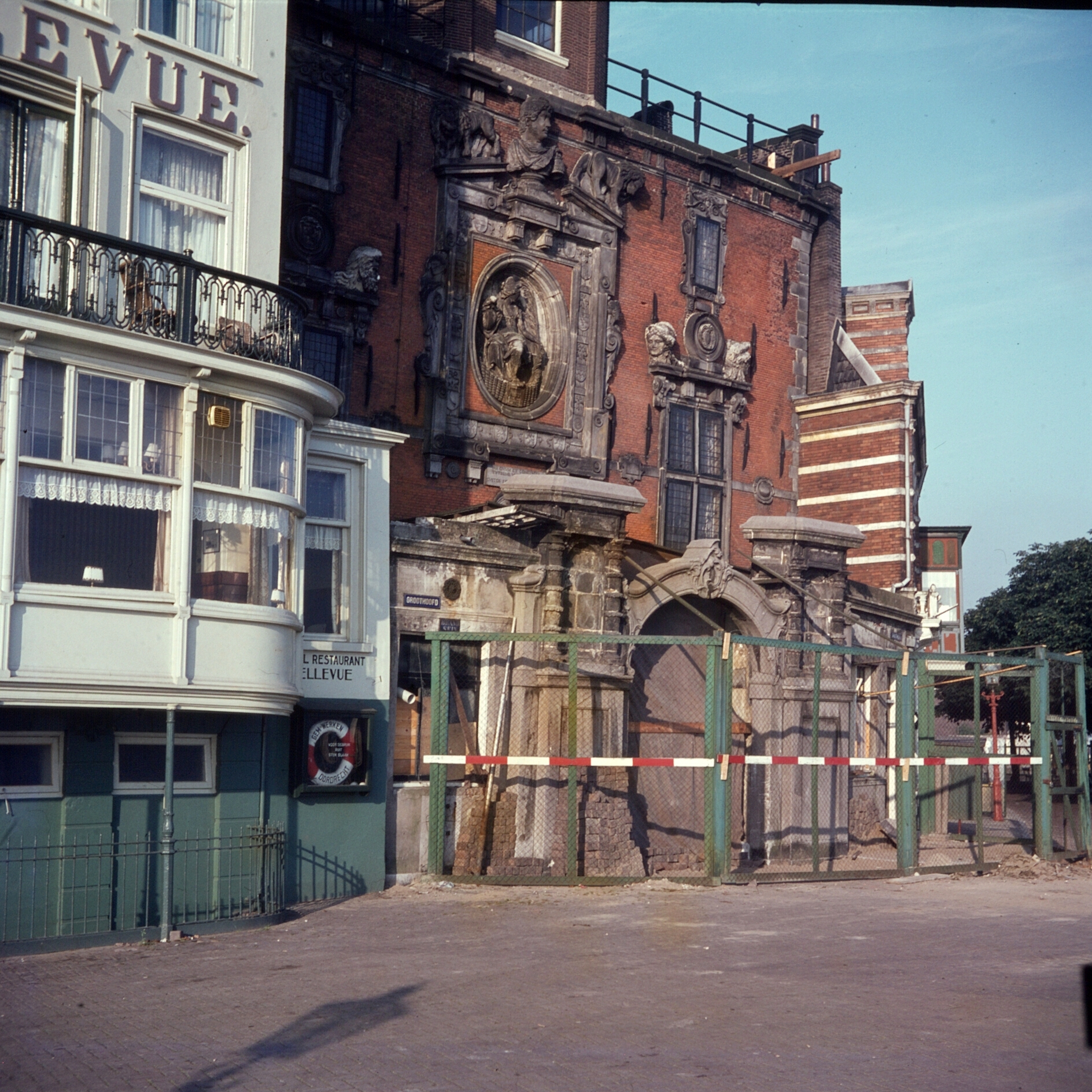 De Groothoofdspoort tijdens de renovatie gezien vanaf de kant van de rivier.