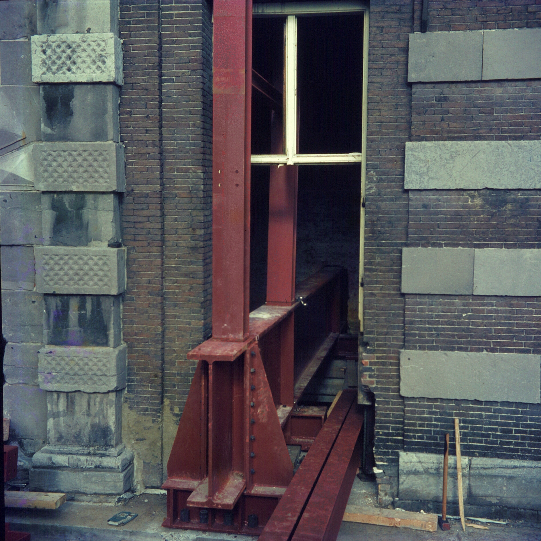 - De ondersteuning van het gebouw d.m.v. een staalskelet tijdens de renovatie van de Groothoofdspoort.