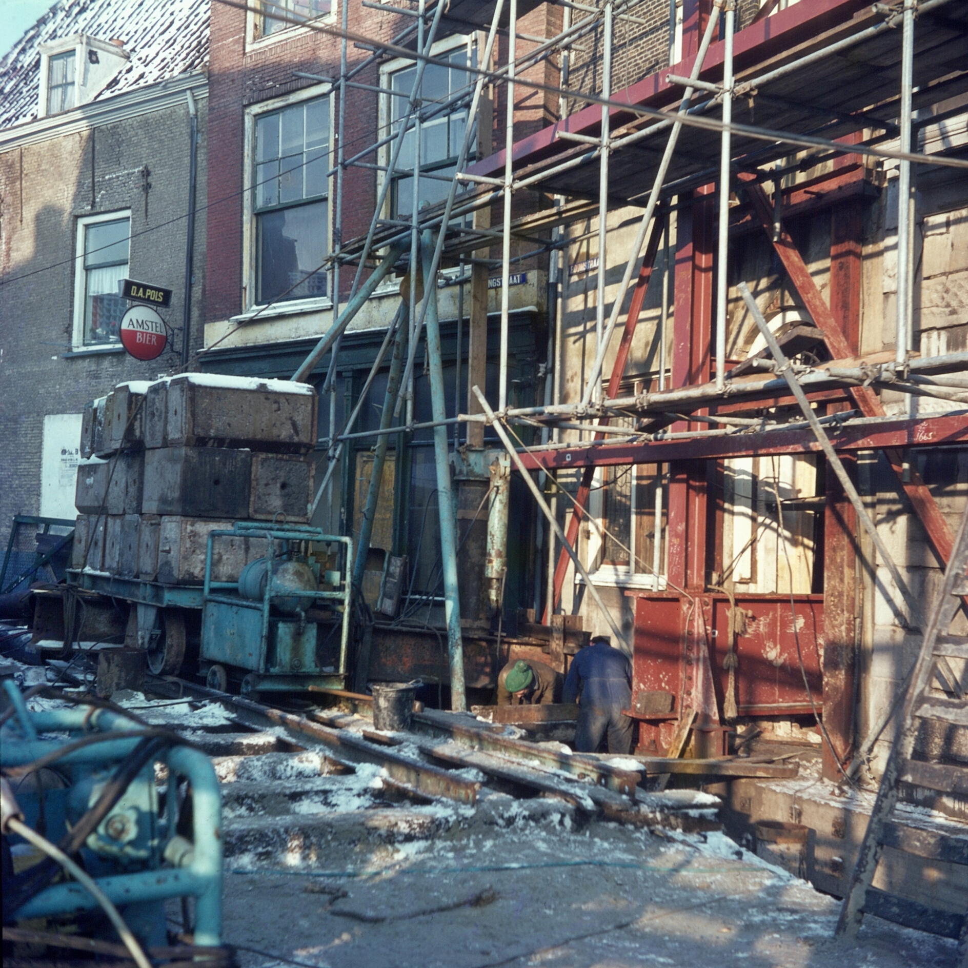 De steigers en de staalconstructie in de Boomstraat ten tijde van de renovatie van de …