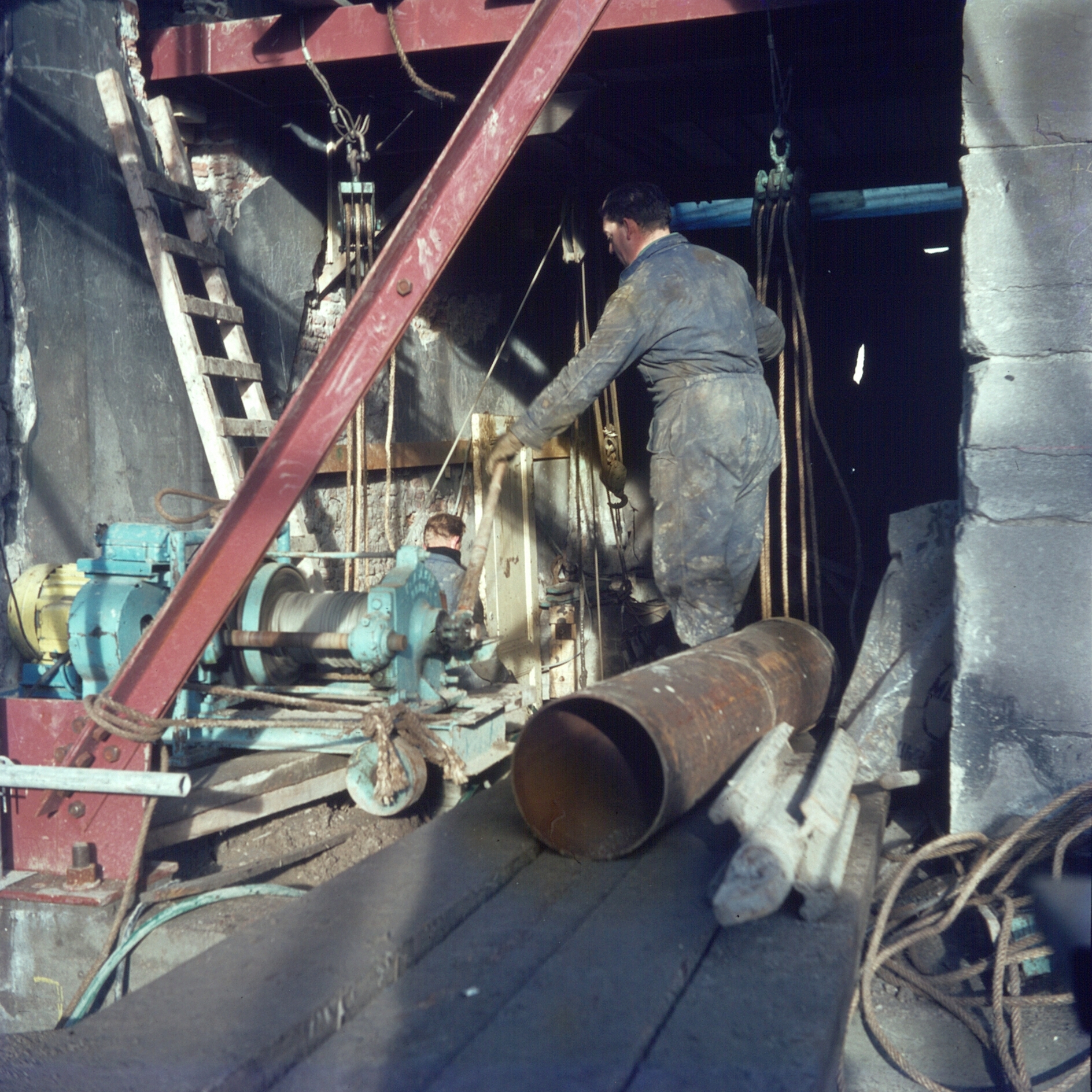 De bouwvakkers aan het werk bij de renovatie van de Groothoofdspoort.