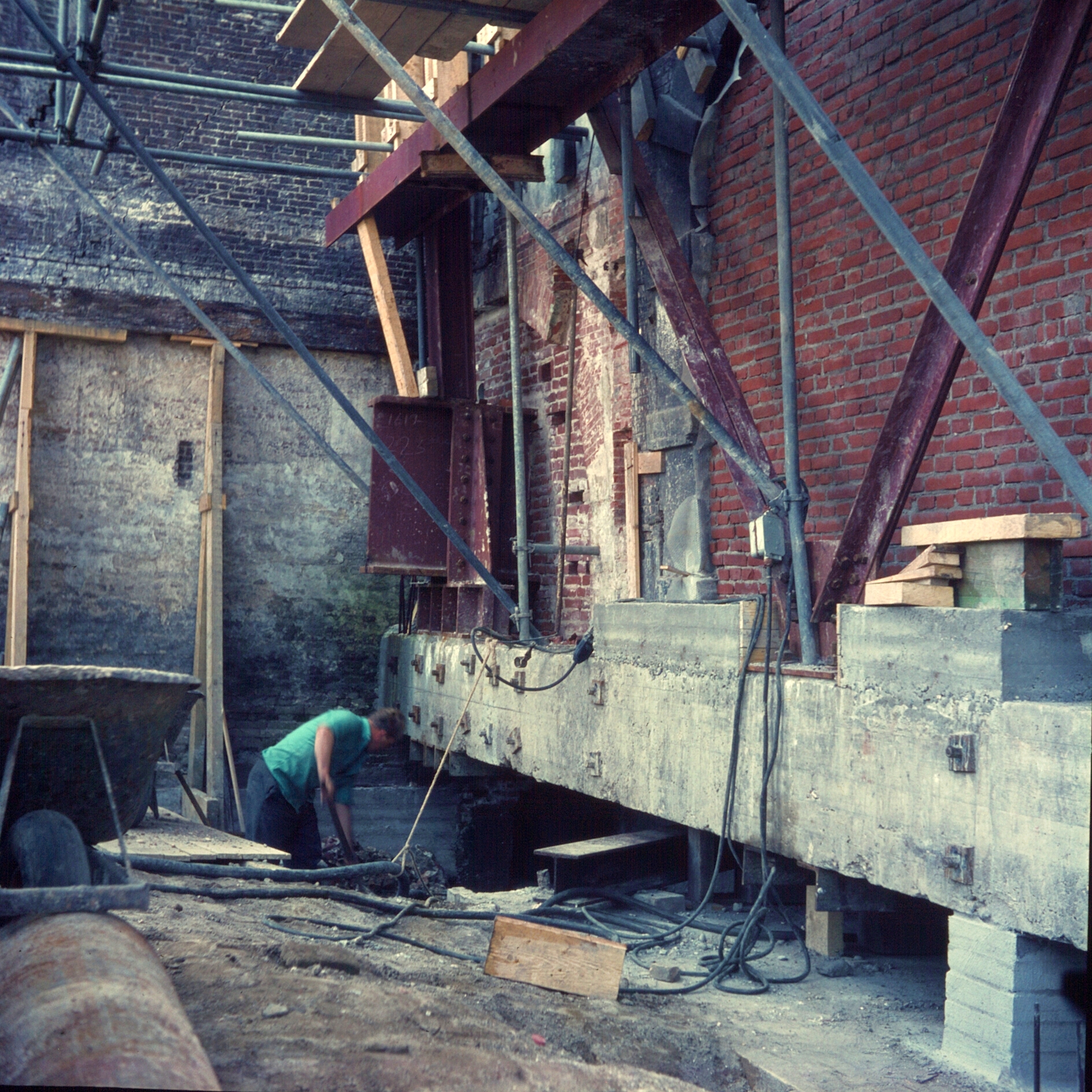 - Gezicht op de fundering van het gebouw tijdens de renovatie van de Groothoofdspoort.