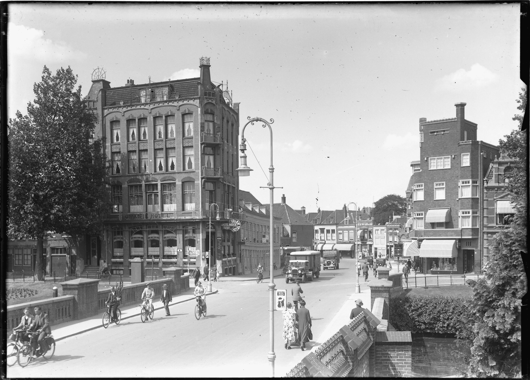 Het Oranjehotel op de hoek Johan de Wittstraat/Vest. De Johan de Wittbrug gaat over de …