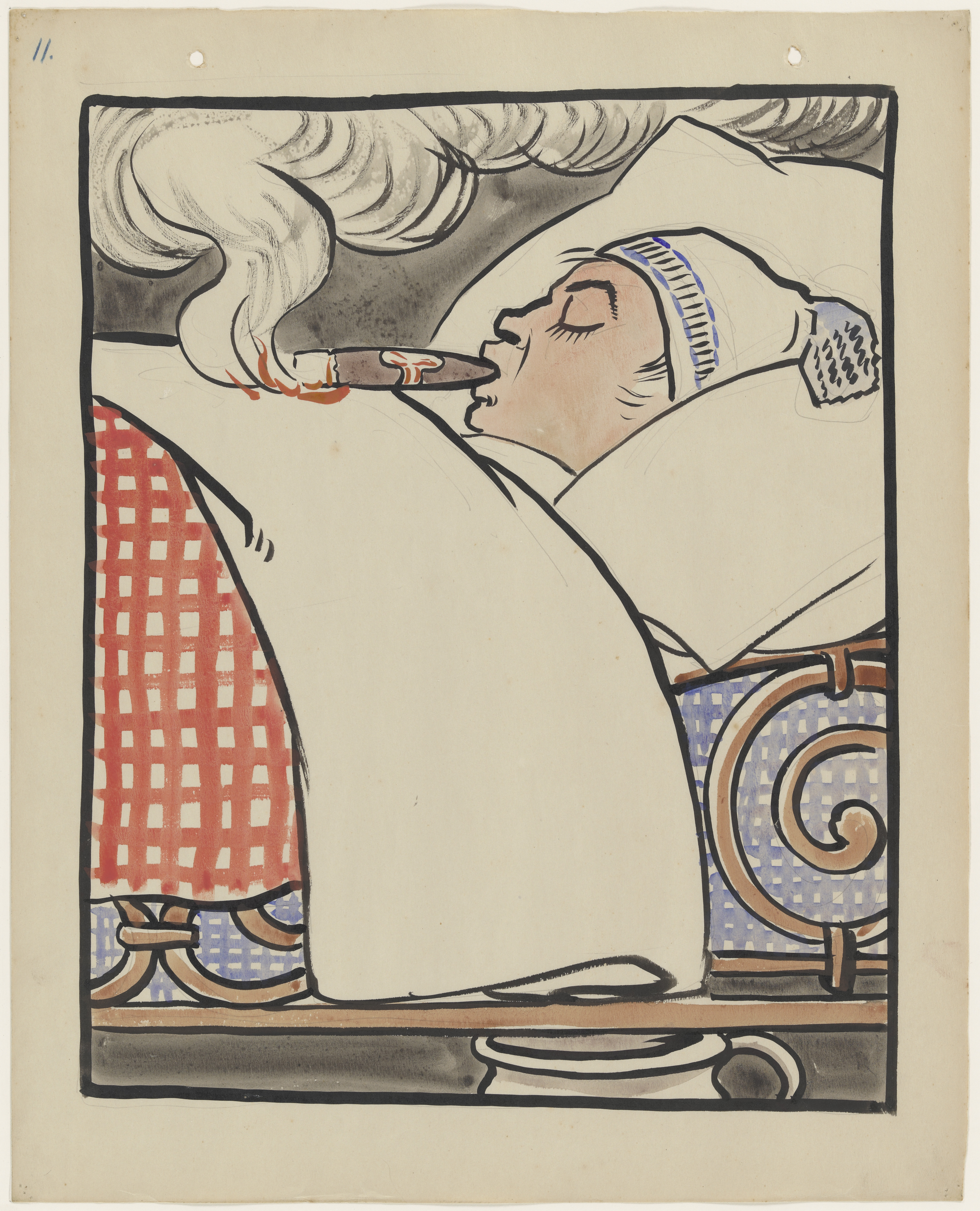 - Tekening behorende bij een feestlied gezongen tijdens de familiemaaltijd ten huize van brandkasten- en slotenfabrikant B.H.M. Lips t.g.v. diens zilveren zakenjubileum op 1-10-1918.