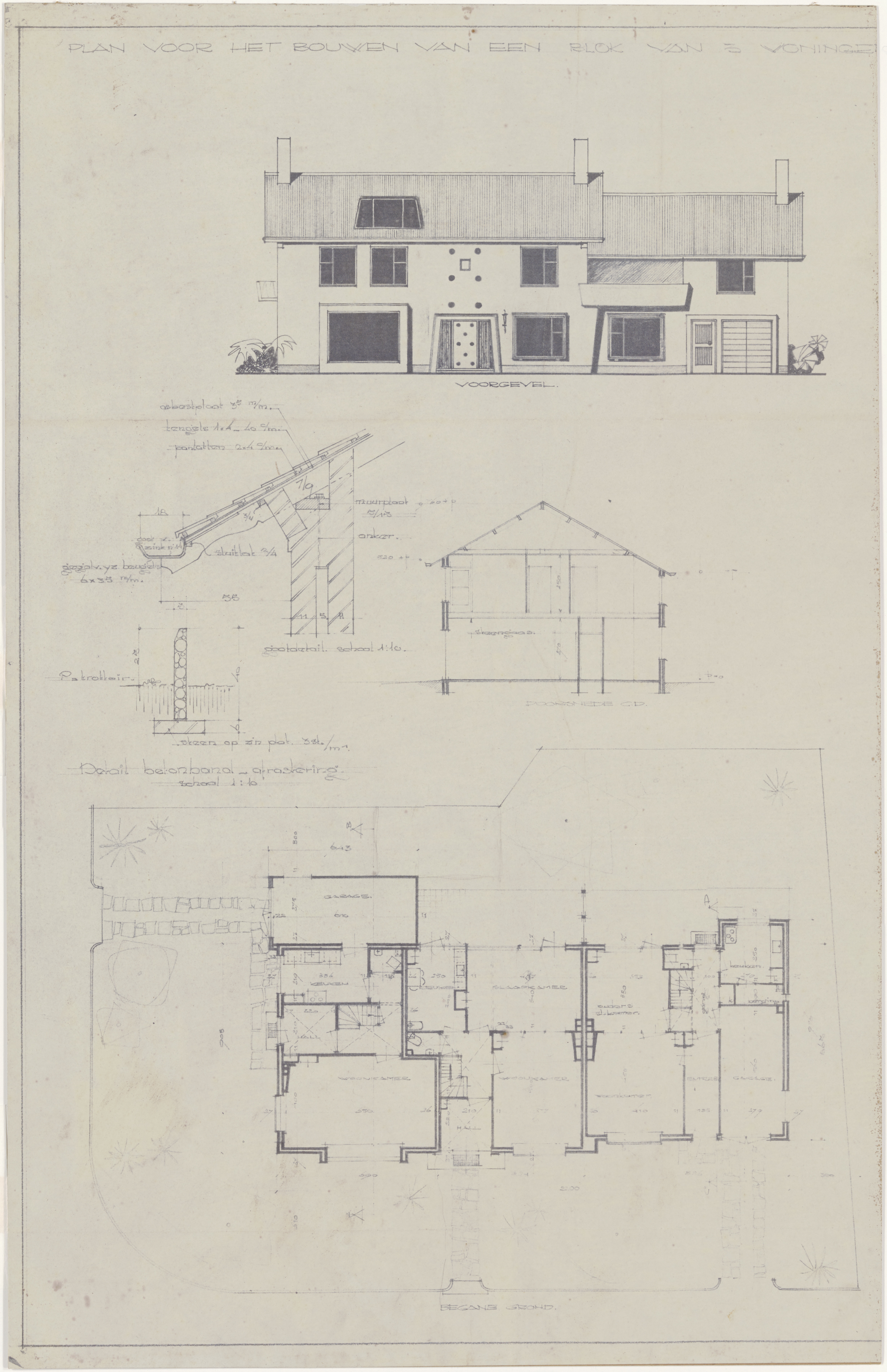 Bouwkundig tekening betreffende een plan tot het bouwen van 3 woonhuizen op de …