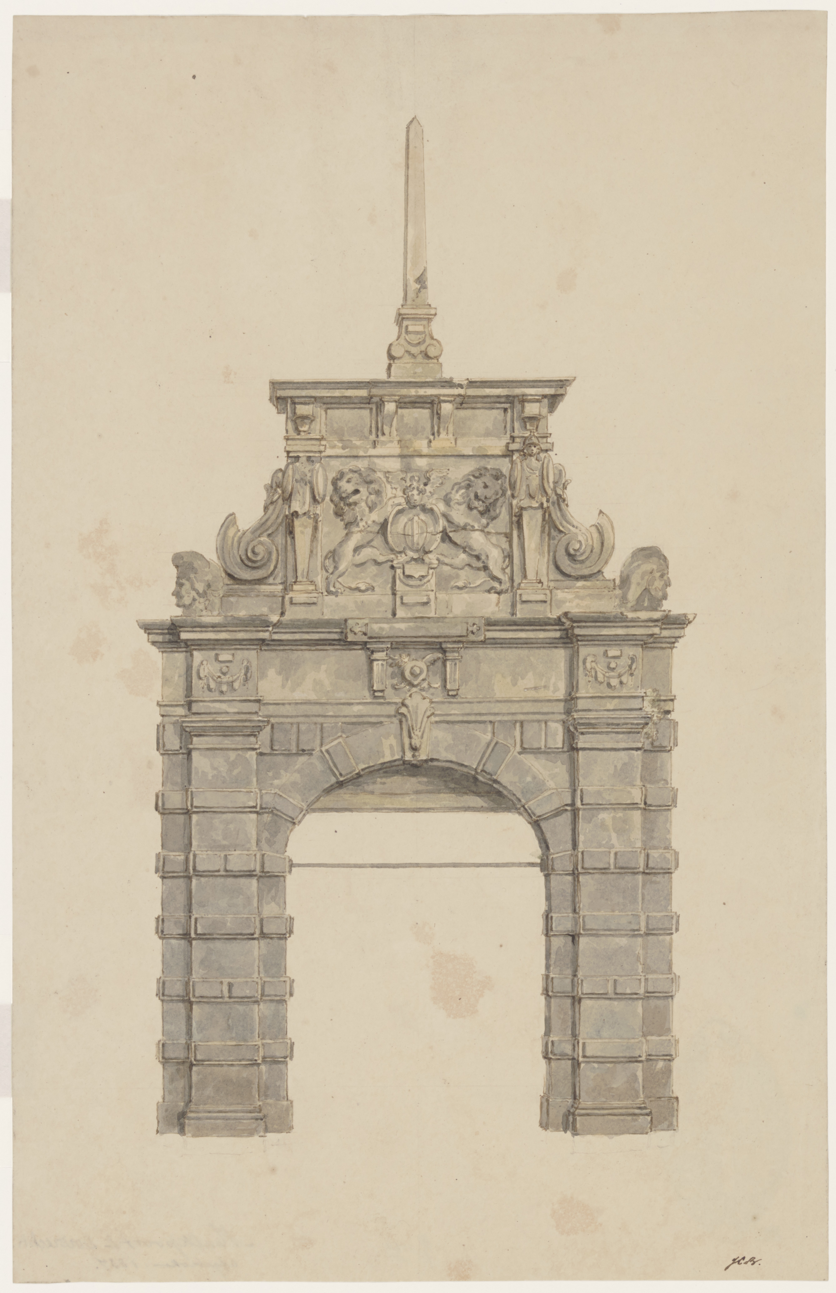 De buitenzijde van het Melkpoortje, c. 1832.