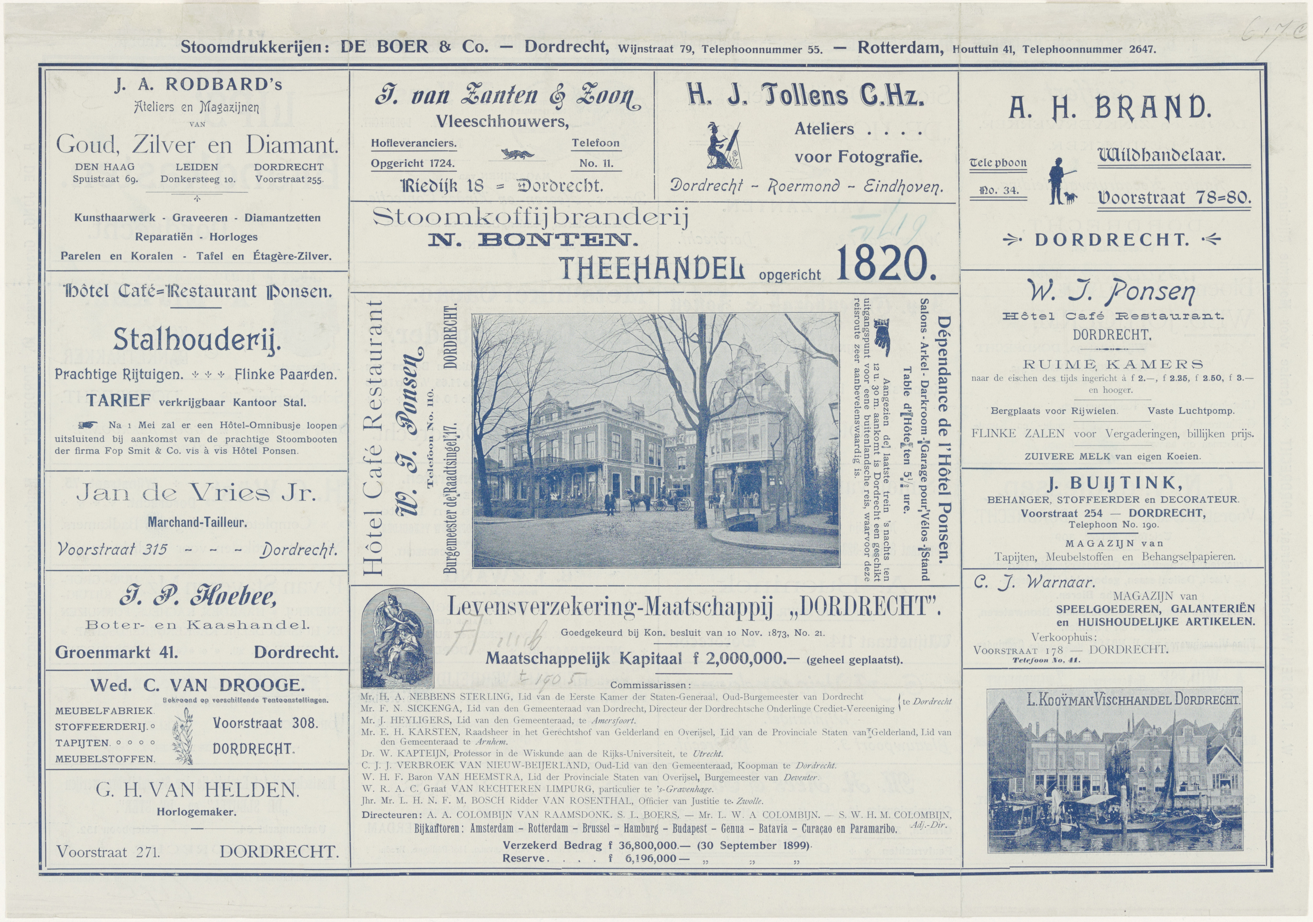 De foto's op dit reclameblad zijn van Hotel Ponsen aan de westzijde van de Stationsweg en het visvlot van Kooijman aan de Taankade.