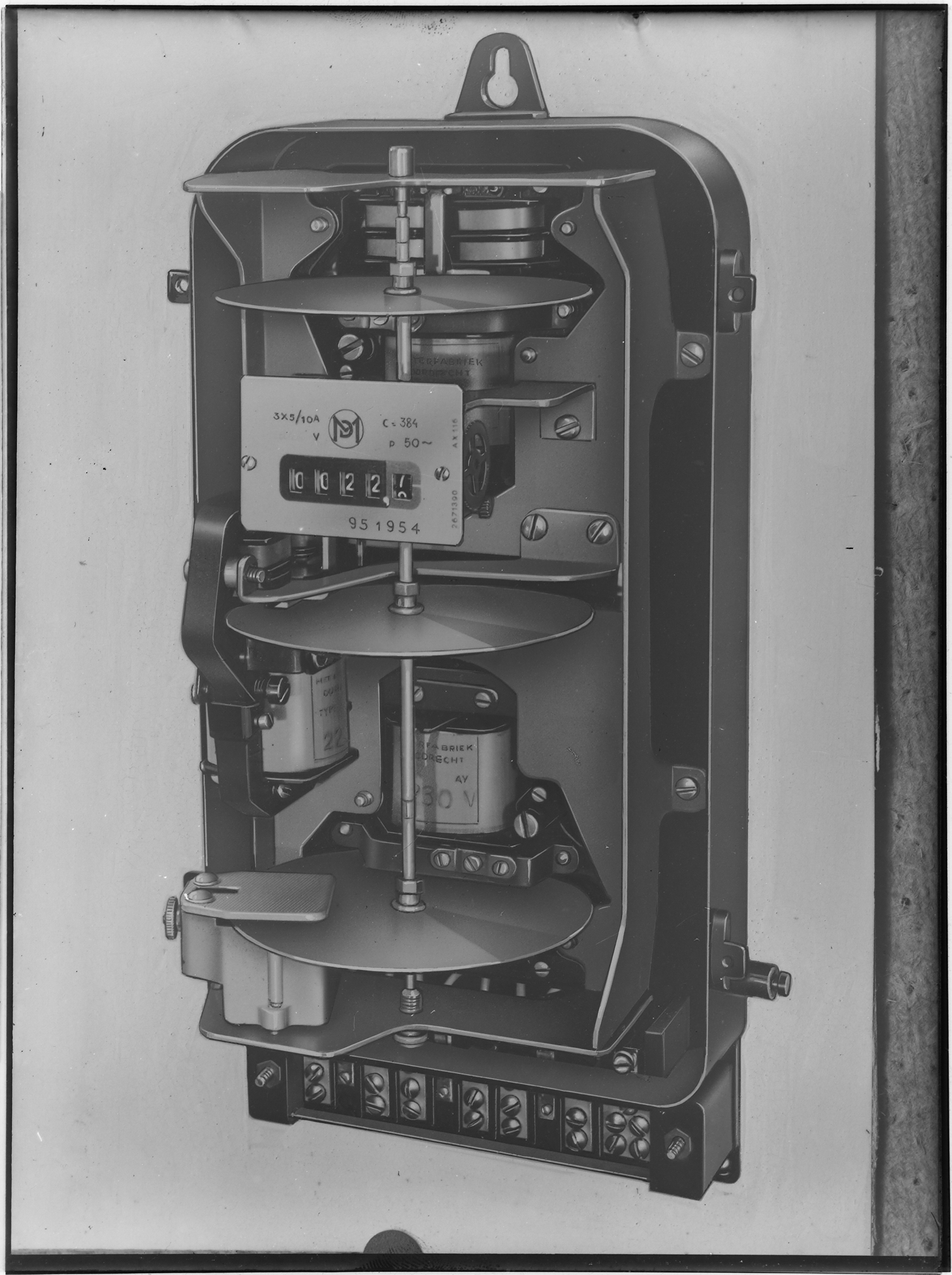 - Afbeelding van een elektriciteitsmeter geproduceerd door de Meterfabriek aan de Lijnbaan
