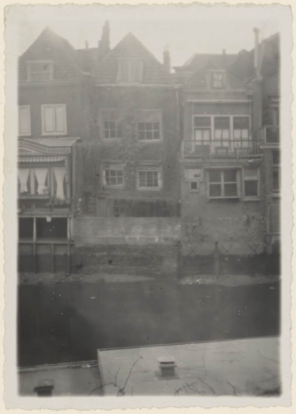 Achtergevels van huizen ten zuiden van de Nieuwbrug aan de waterzijde van de Voorstraat.