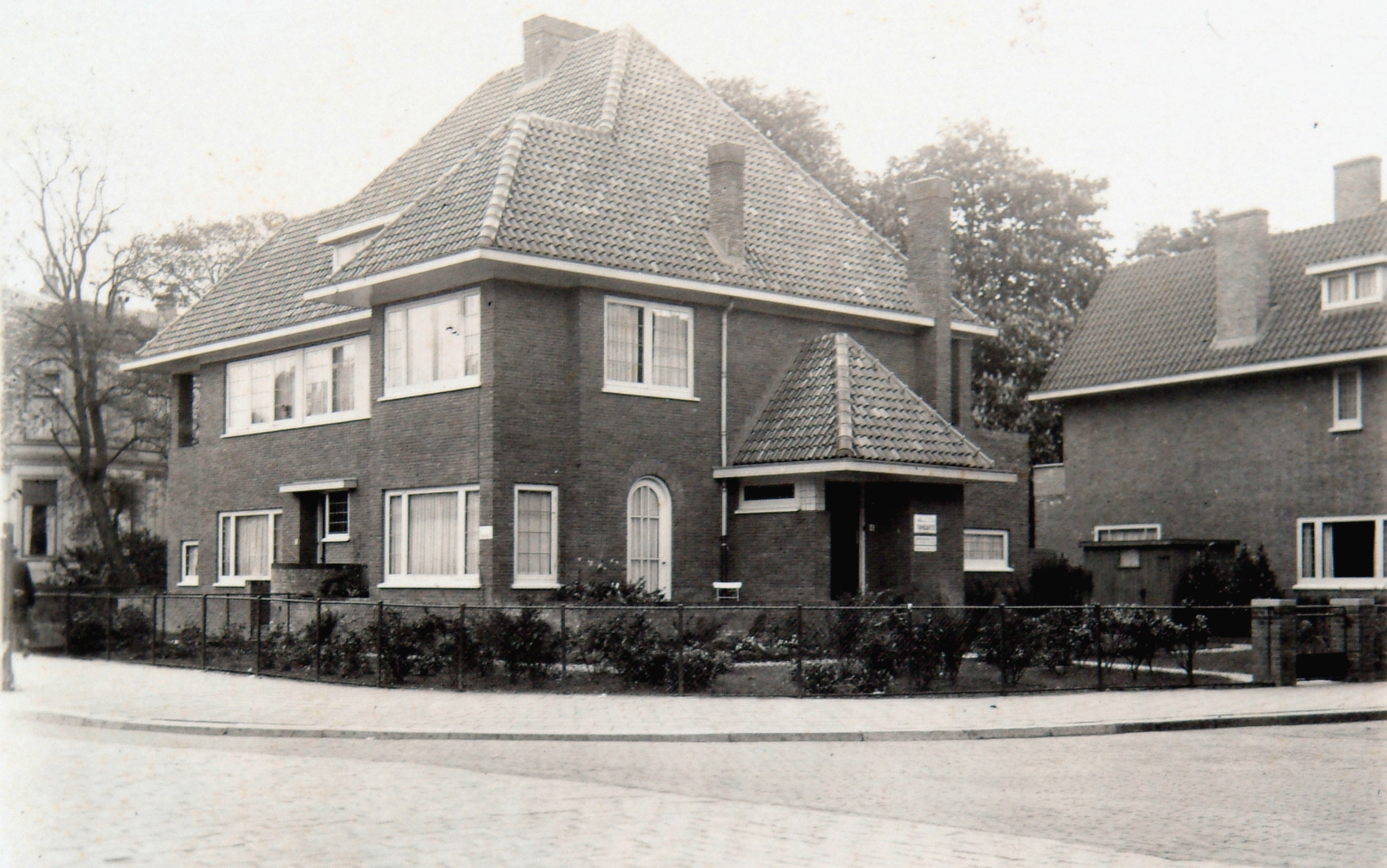 Huis op de hoek Vrieseweg (links) en Ferdinand Bolsingel. Het pand werd jarenlang bewoond door tandarts Jol de Jong.