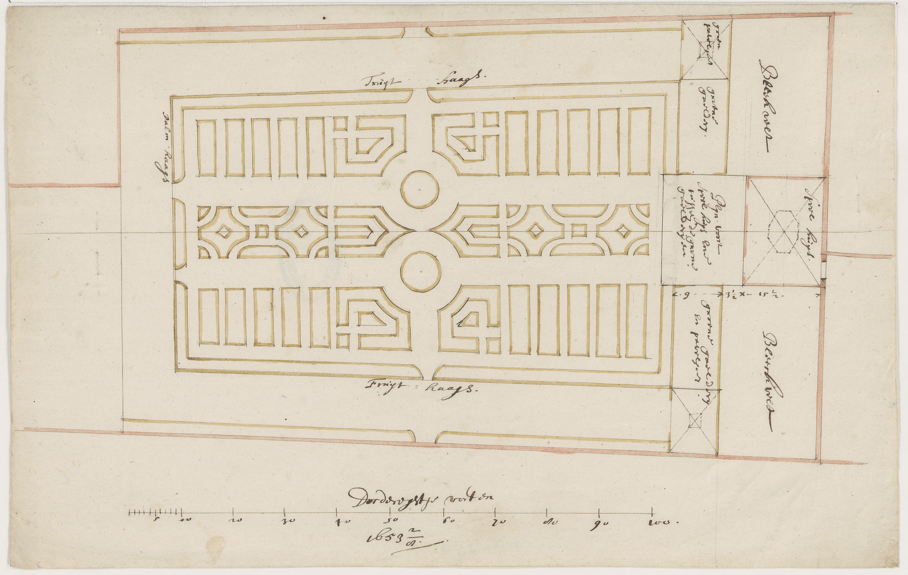 Tuinontwerp voor de tuin van het huis De Onbeschaamde aan de Wijnstraat.