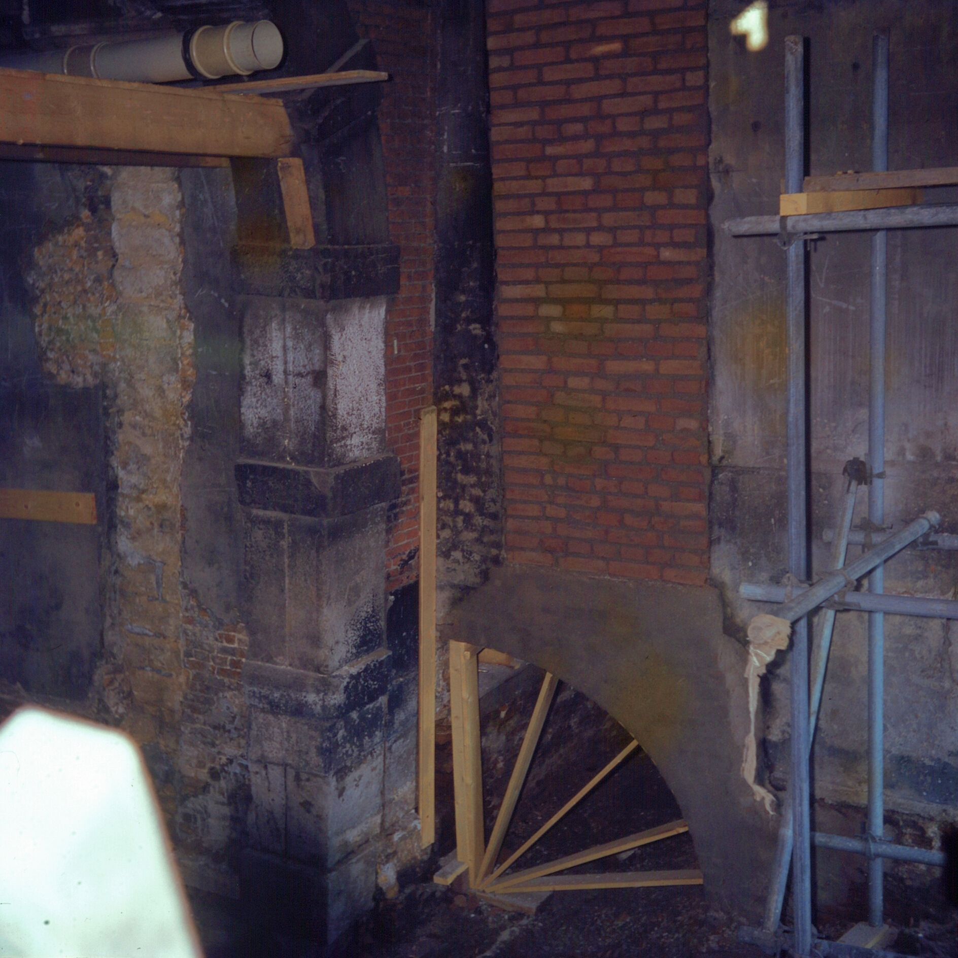 - Blik op de muren tijdens de renovatie van de Groothoofdspoort.