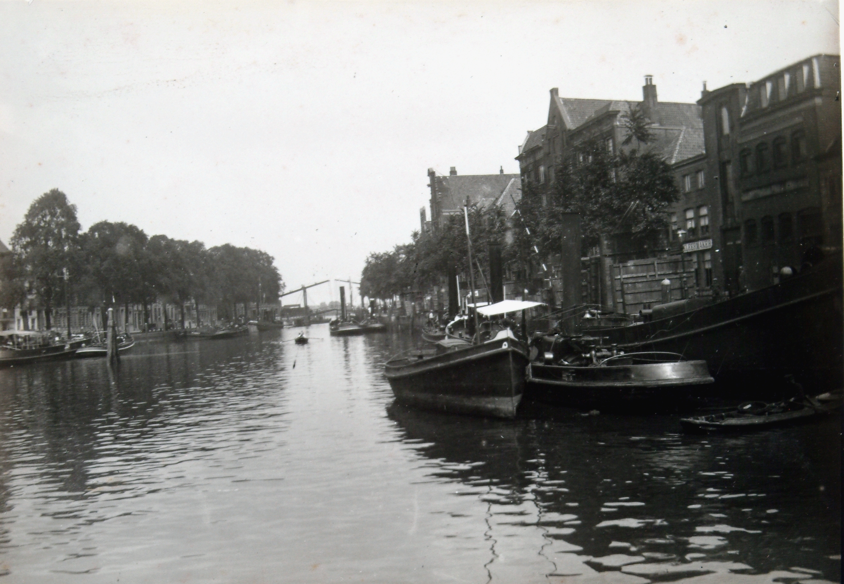 Deze foto is duidelijk vóór 1914. Kuipershaven 155 en 160-162, geheel rechts op de foto, hebben nog niet hun huidige uiterlijk. Kuipershaven 155 is in 1914 verbouwd, waarbij het huidige pand grotendeels tot stand kwam.