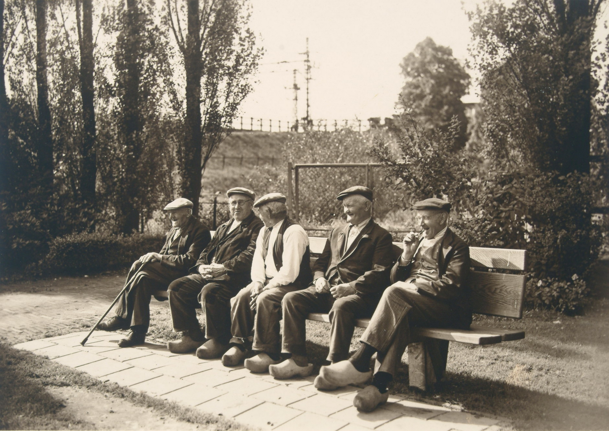 - boeren / boerinnen klompen ouderen / senioren zitbanken