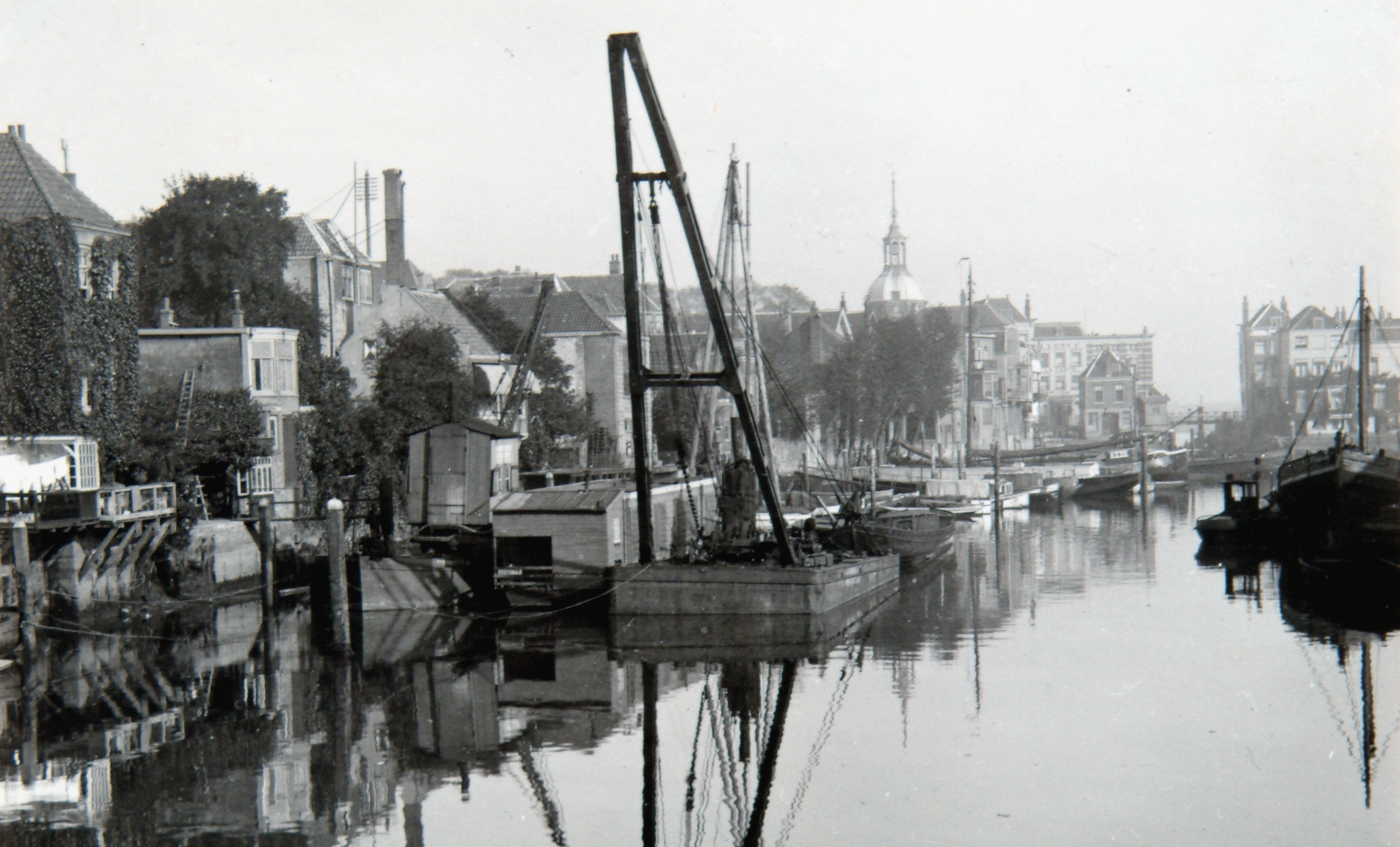 De Wijnhaven vanaf de Nieuwbrug richting Groothoofd. De huizen links staan aan de Wijnstraat. Het torentje op de achtergrond is van de Groothoofdspoort. Geheel rechts panden op de Taankade.