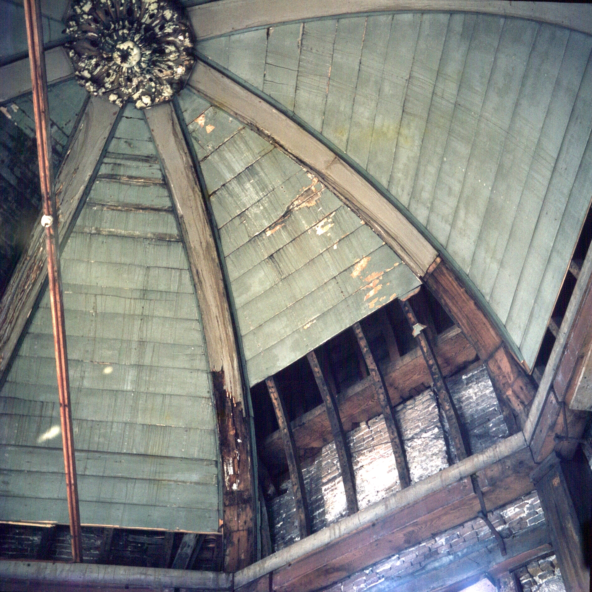 - De werkzaamheden aan de koepel gedurende de restauratie van de Groothoofdspoort.