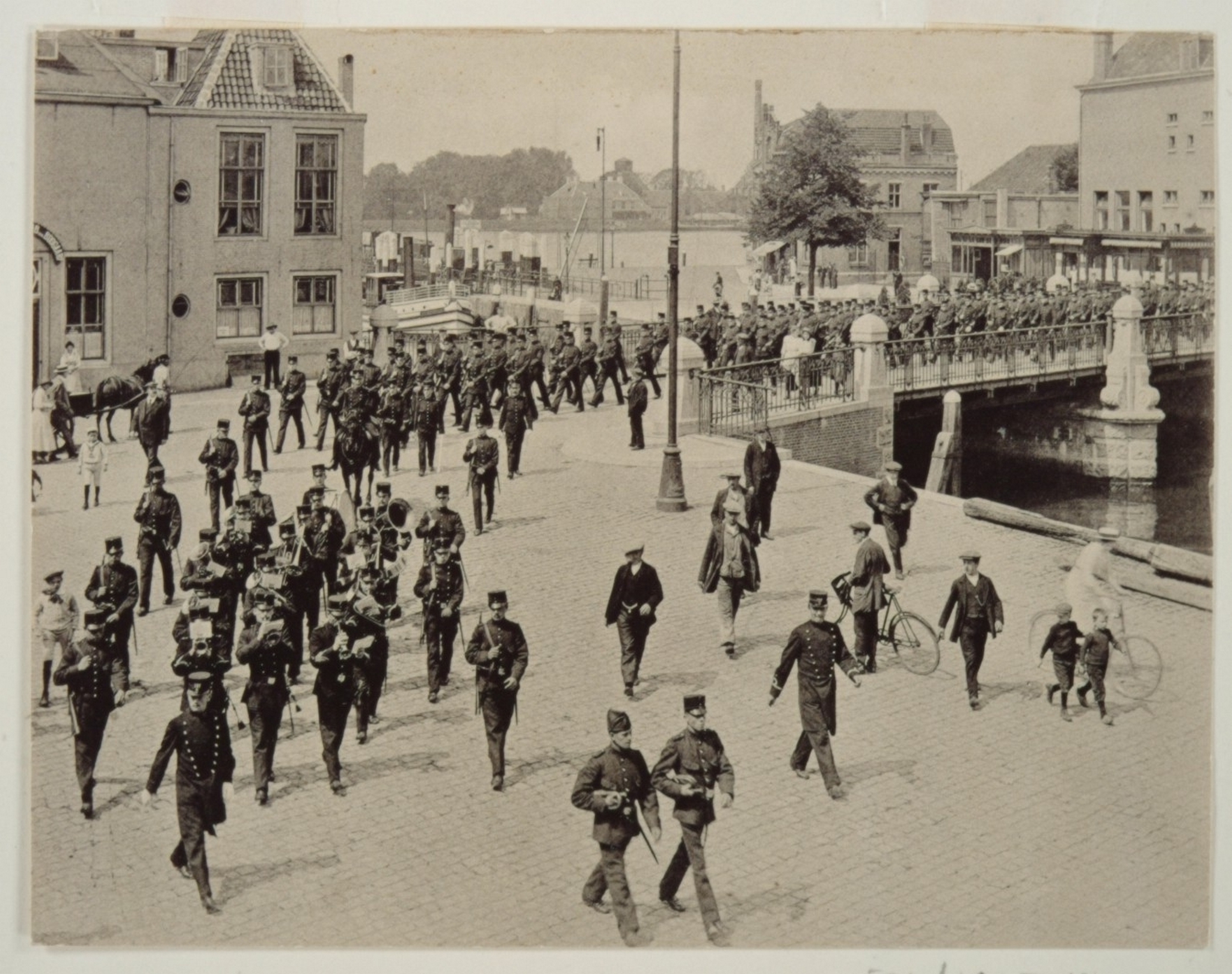 Militaire mars van het Korps Pontonniers op de Engelenburgerbrug in augustus 1914