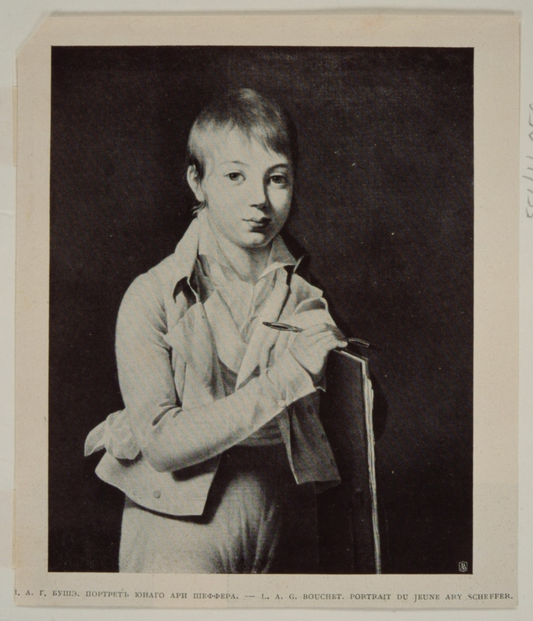 - hxb: 14 x 12,7 cm. Naar een schilderij van L.A.G. Bouchet. Uit het tijdschrift Trésors d'Art en Russie. Het bevond zich destijds in één van de voormalige keizerlijke paleizen te St. Petersburg.