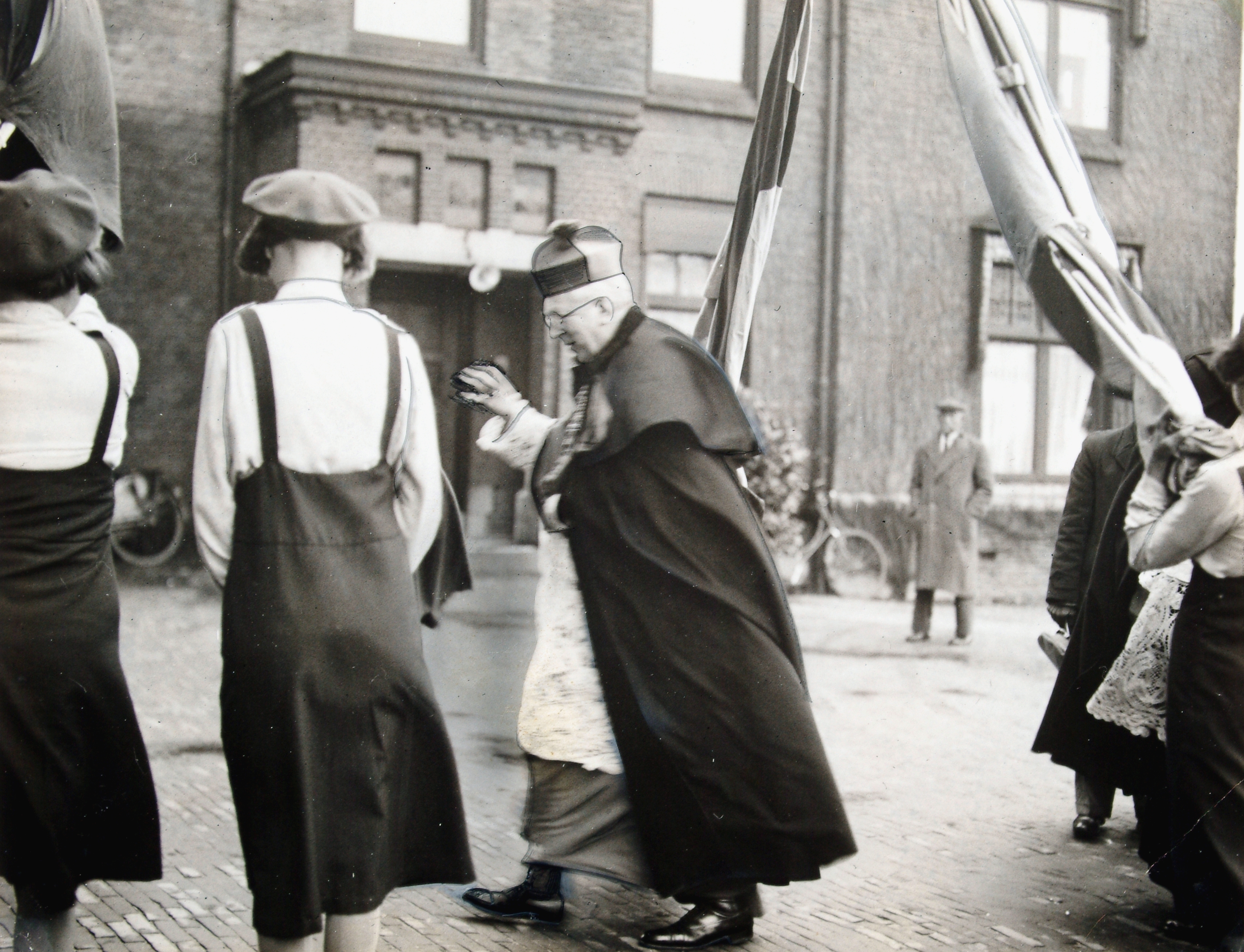 - Mgr. J.P. Huibers, bisschop van Haarlem, bezoekt de stad voor het toedienen van het Heilig Vormsel. Hier bevindt hij zich voor de pastorie van de R.K. Sint Antoniuskerk aan de Burgemeester de Raadtsingel .