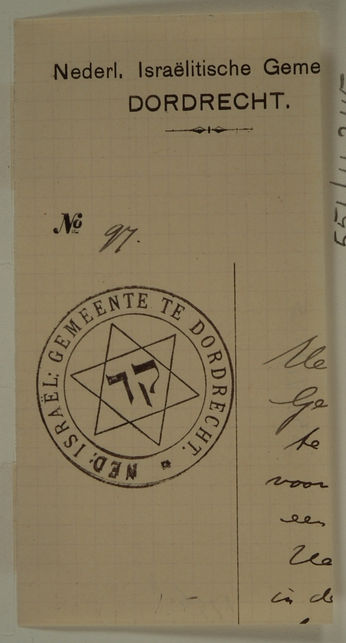 Zegelafdruk van de Nederlandsch Israëlitische Gemeente te Dordrecht