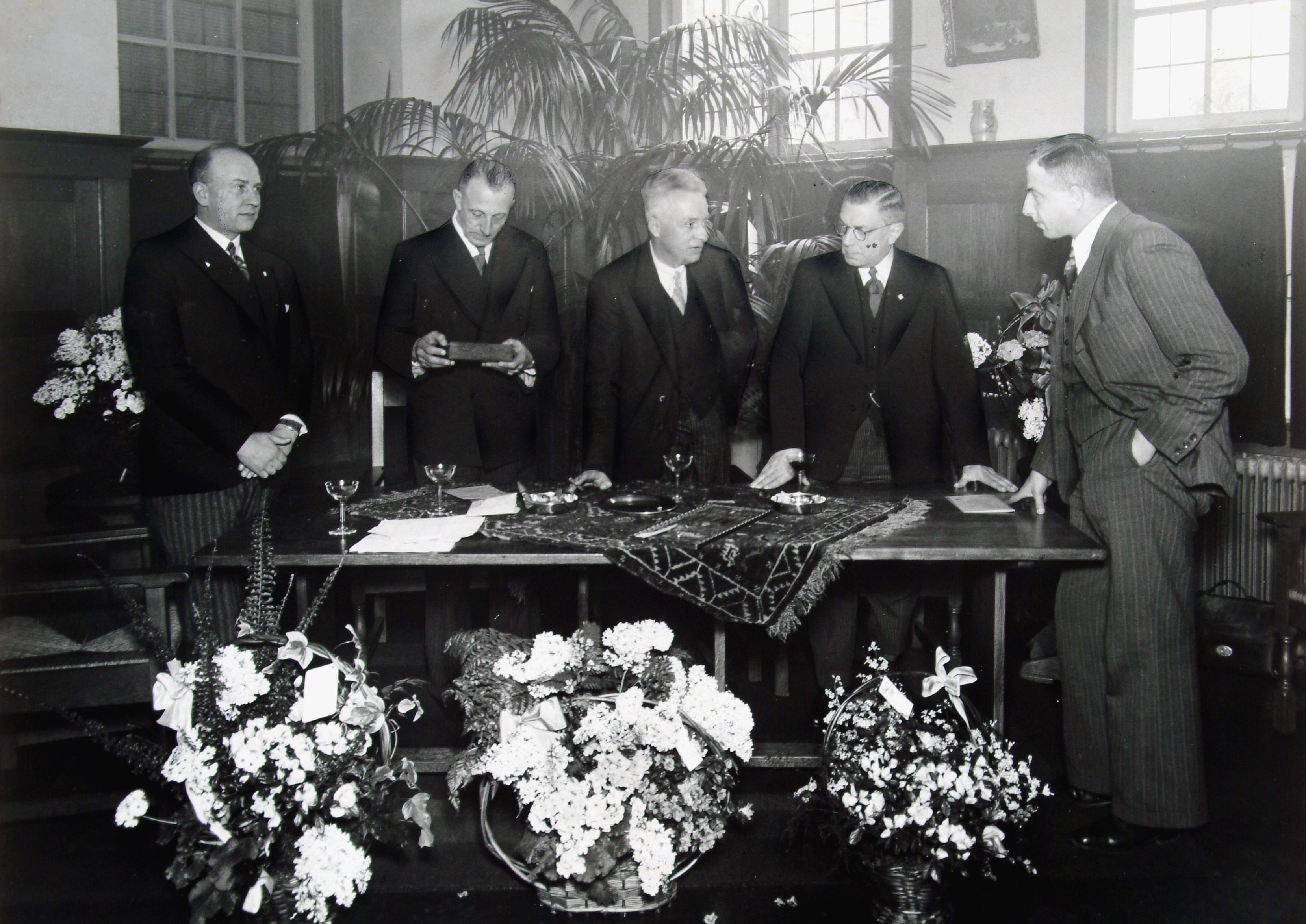 25-Jarig bestaan van de Dordtse Damvereniging. De heer De Hartog biedt namens oud-leden …