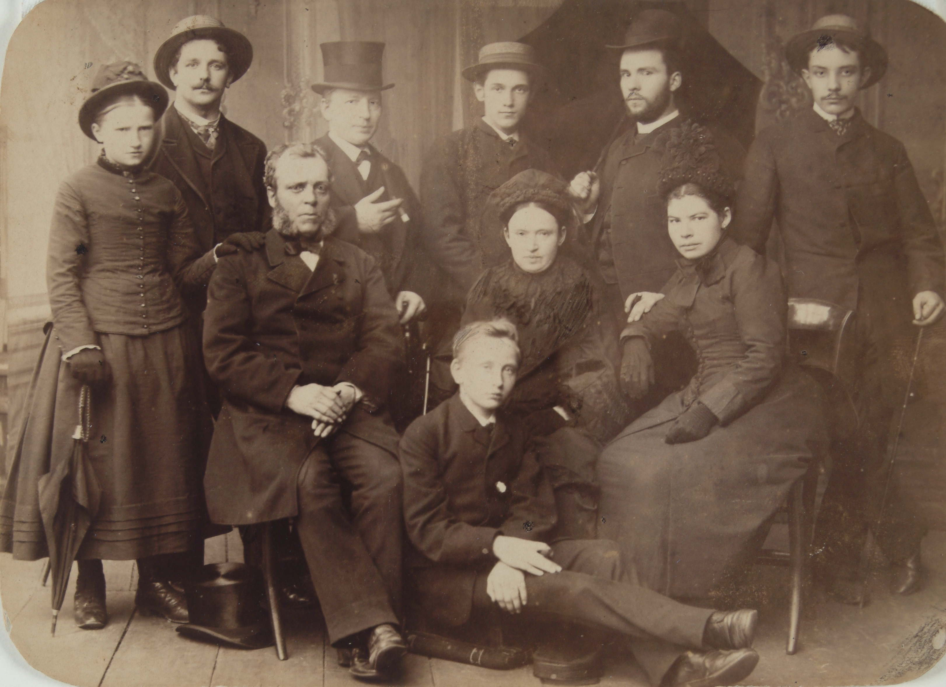 - Groepsportret van de familie Tollens en enkele personeelsleden van het fotografisch atelier. V.l.n.r. 3=Pa Carolus Hendrikus, 6=oom Arie, 8=Tollens, mej. Tollens (zus?), 10=J. Hazebroek.
