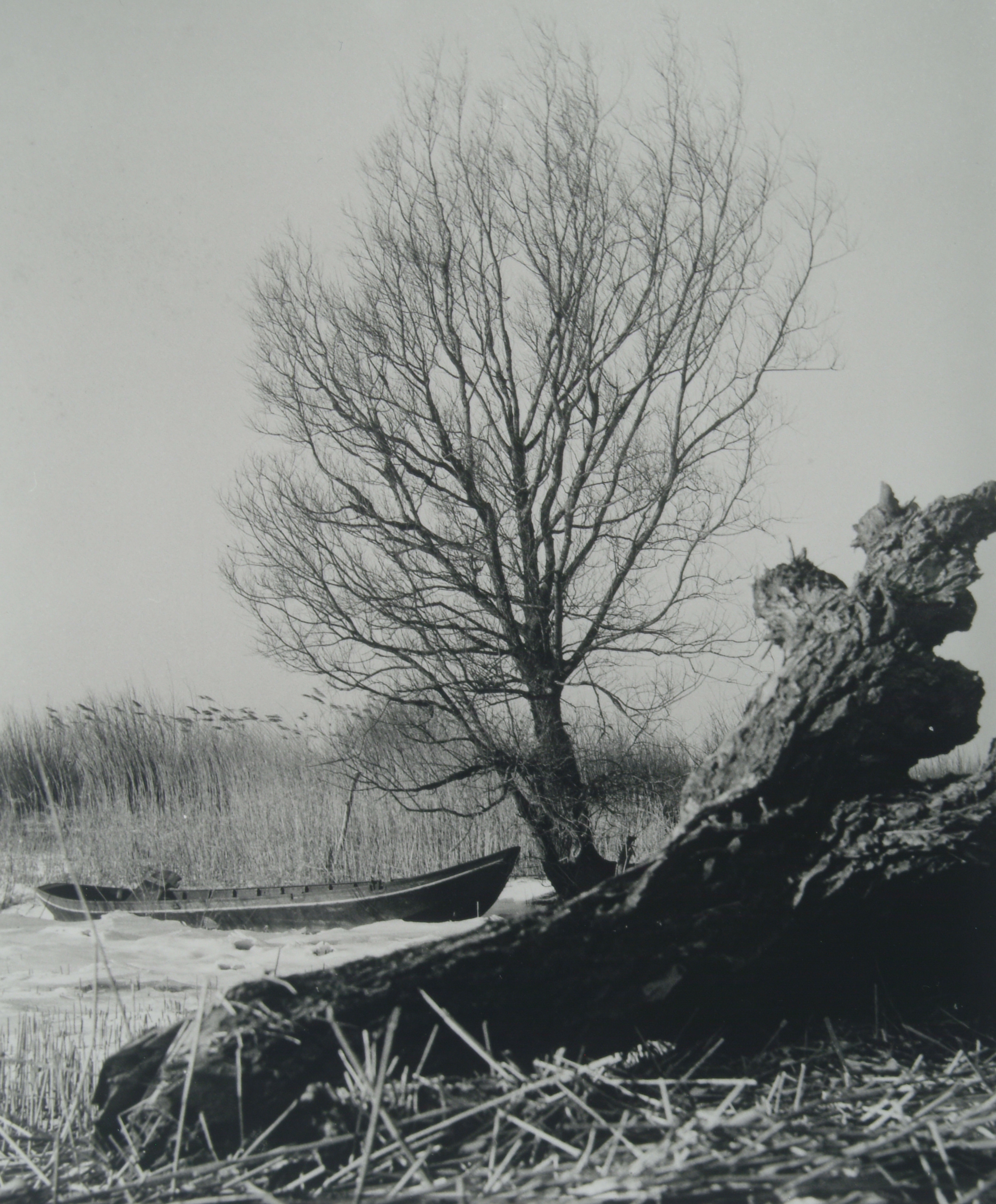 - Winterlandschap met bootje in het riet bij de Rijksstraatweg