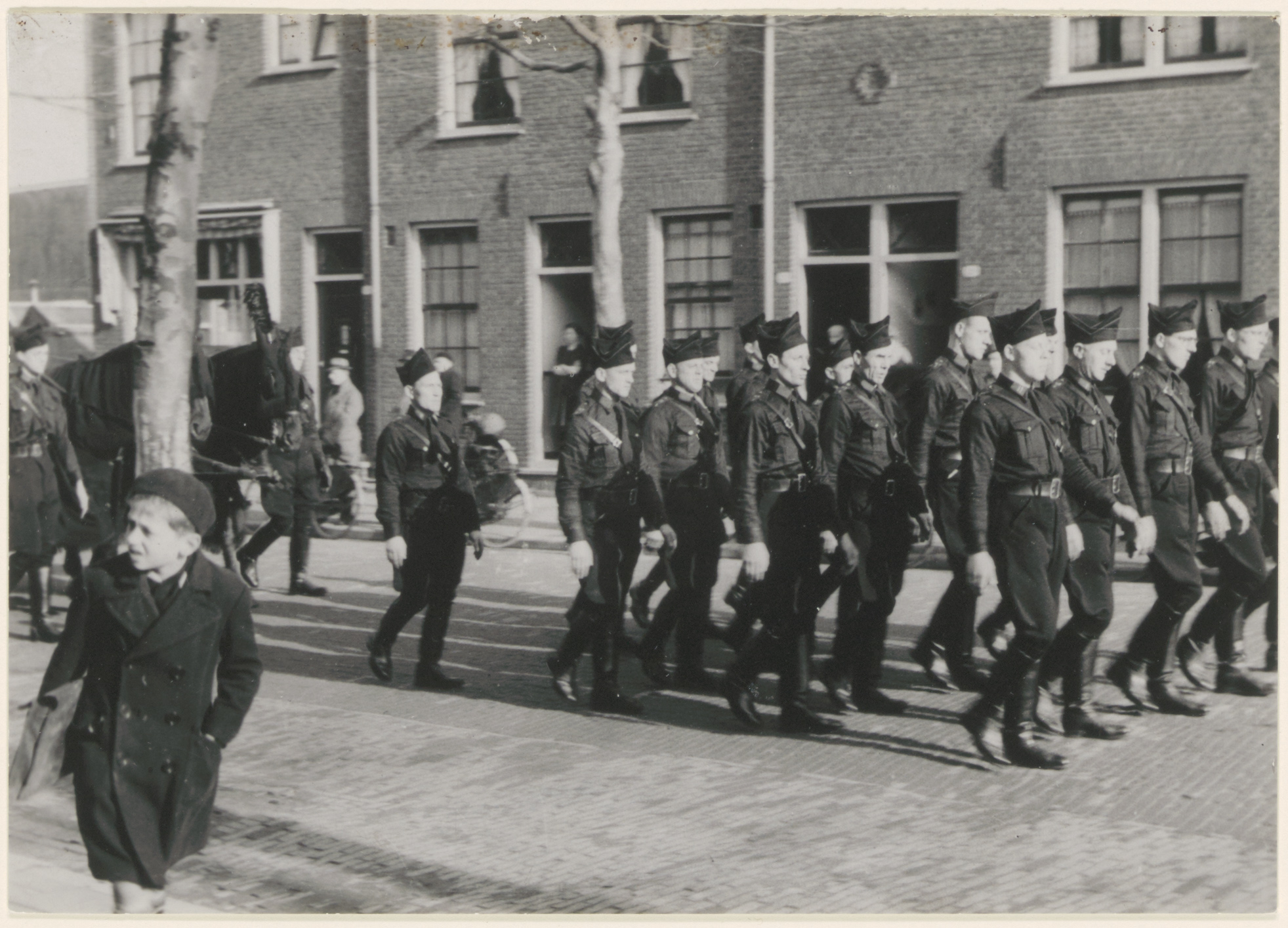 De rouwstoet op weg naar de Algemene Begraafplaats op de Dubbeldamseweg, voor de teraardebestelling van Willem Stam.