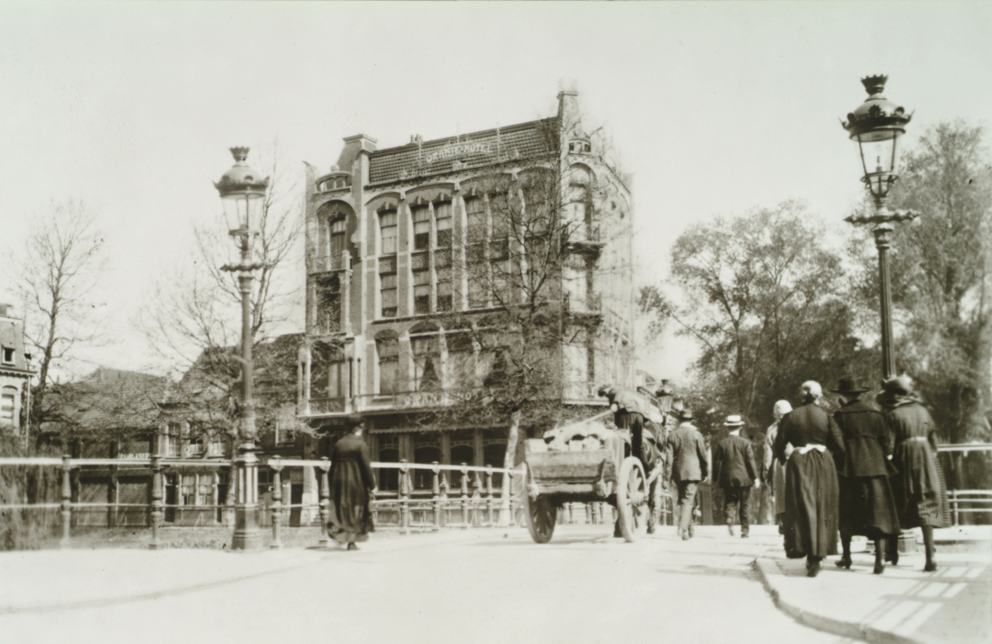 bruggen hotels klederdrachten lantaarns / straatverlichting paard-en-wagens voetgangers
