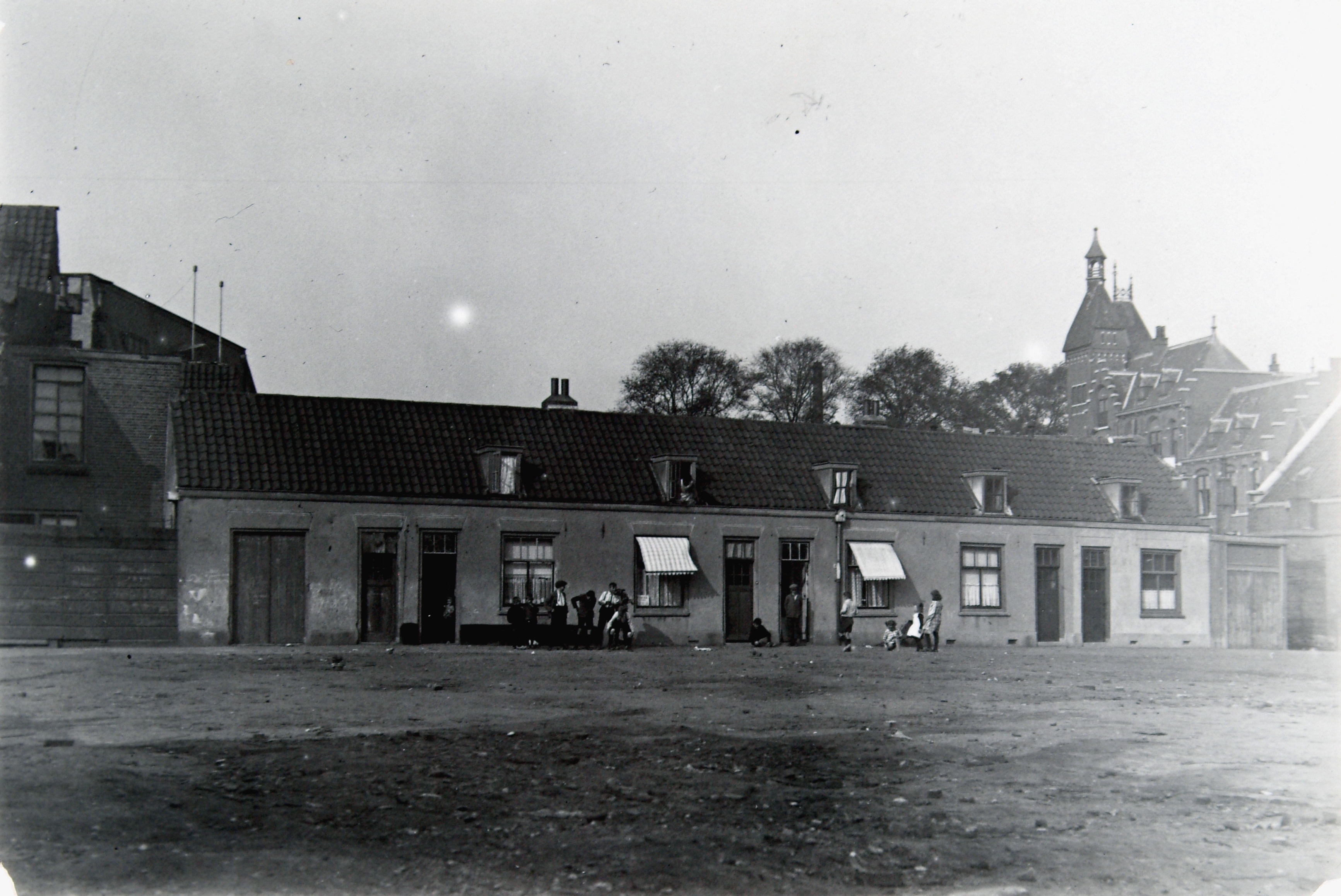 - Restant van Hof De Kous in de Raamstraat. Rechts het postkantoor op het Bagijnhof.