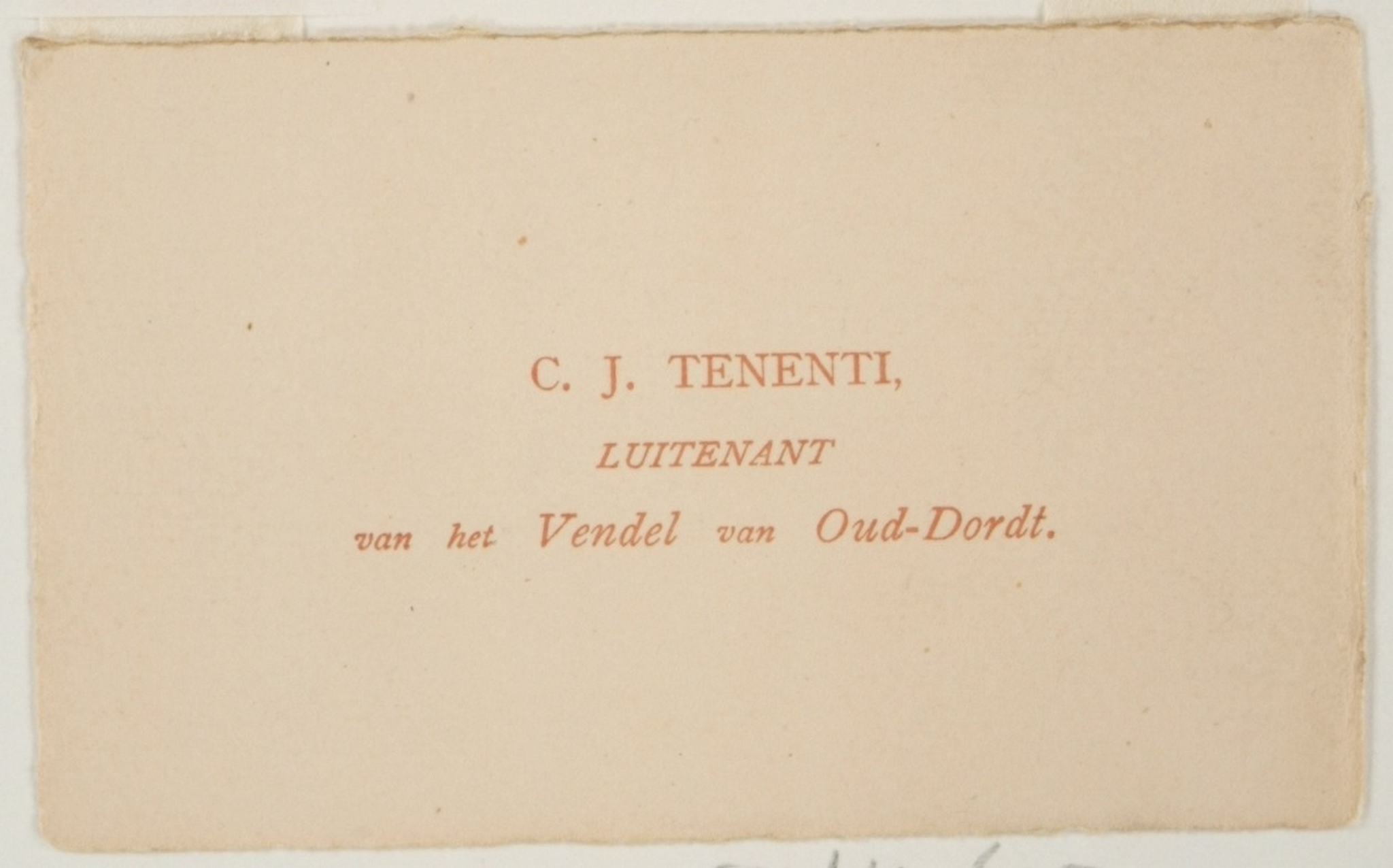 Visitekaartje van de luitenant van het vendel in tentoonstellingsdorp Oud-Dordt, …