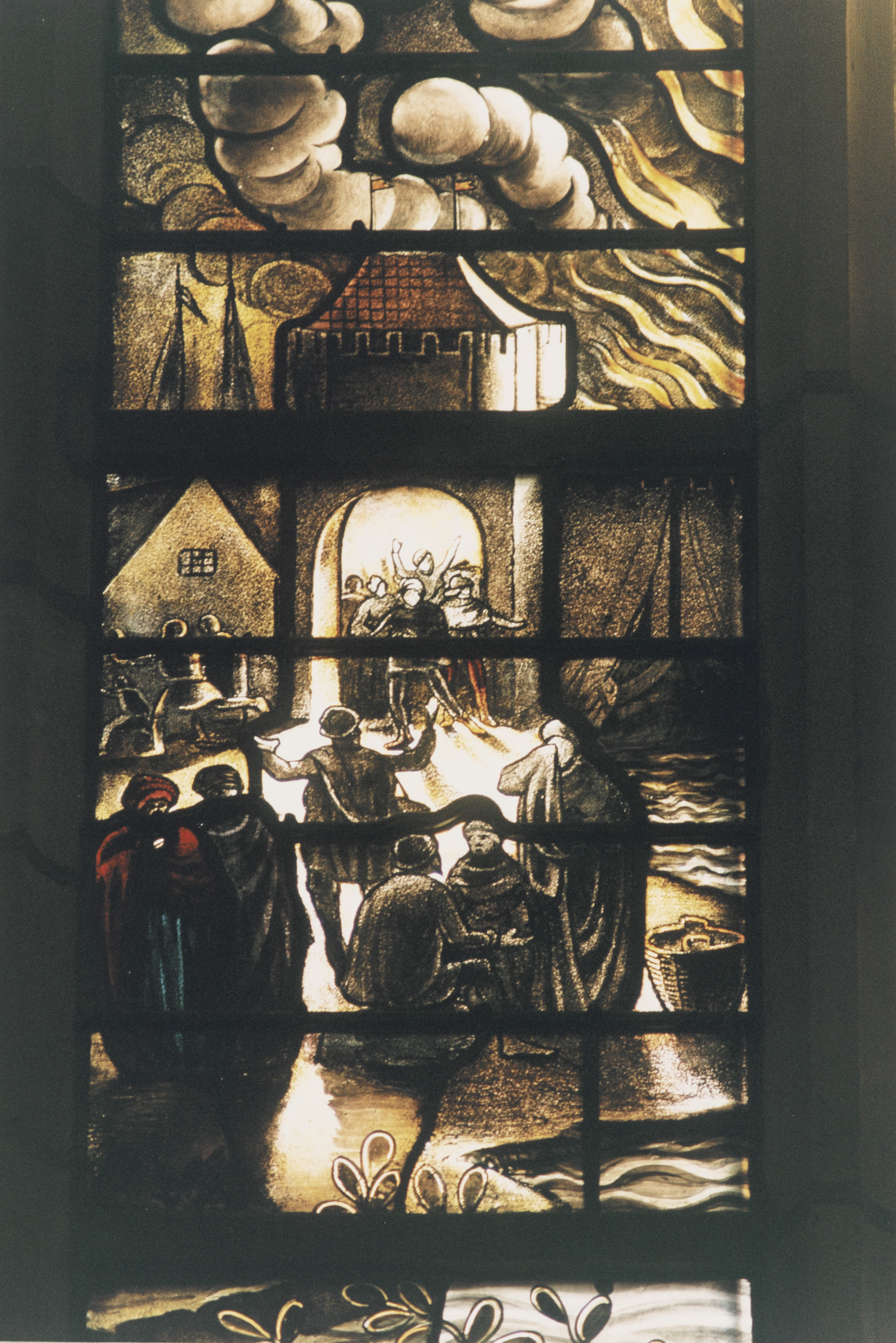 - Detail van een van de drie ramen in de Jeruzalemskapel in de Grote Kerk.