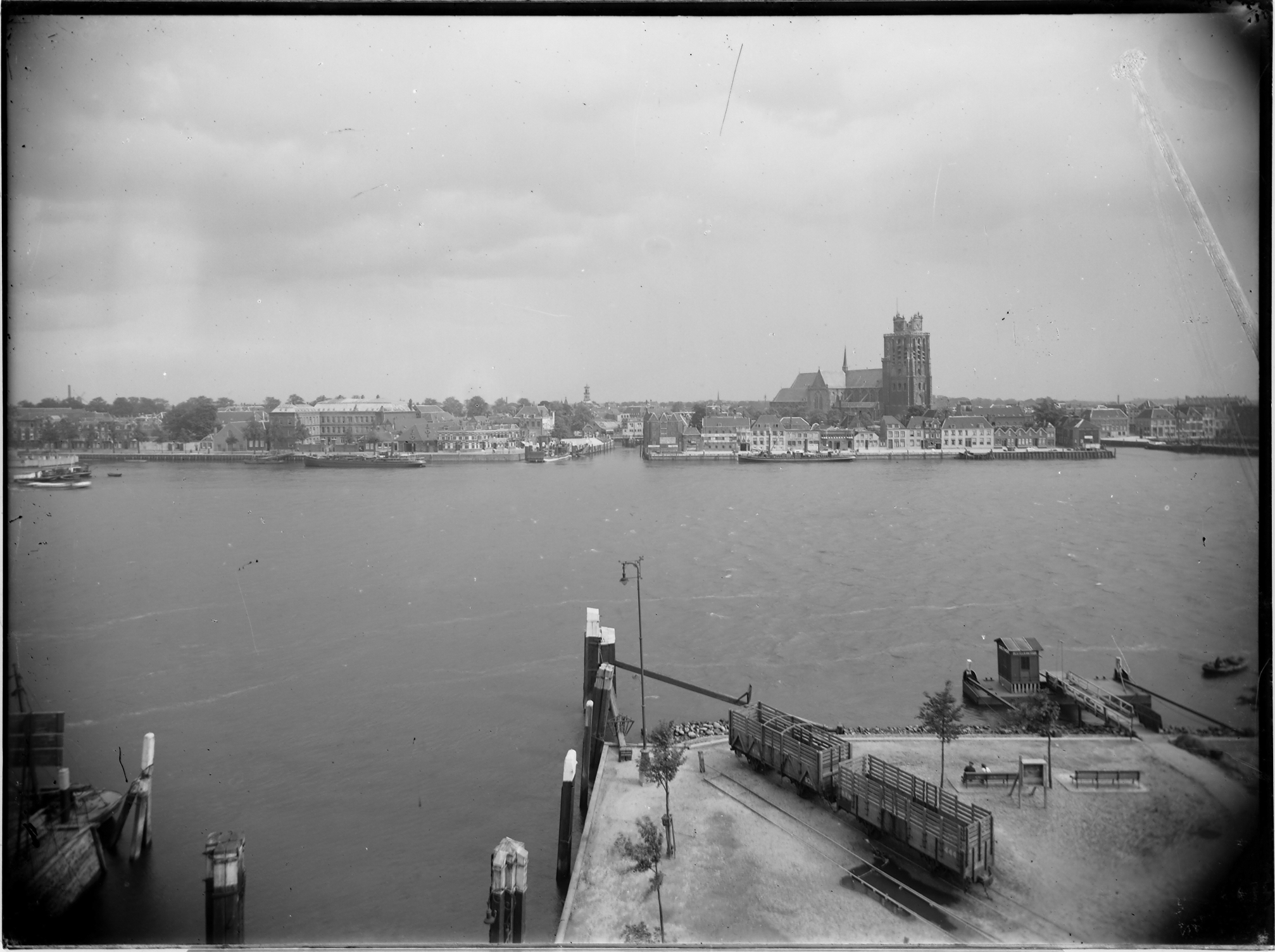 - Gezicht vanaf het Veerplein in Zwijndrecht op de Buiten Walevest, de aanlegsteiger van de veerdienst aan het Blauwpoortsplein en de Hooikade te Dordrecht