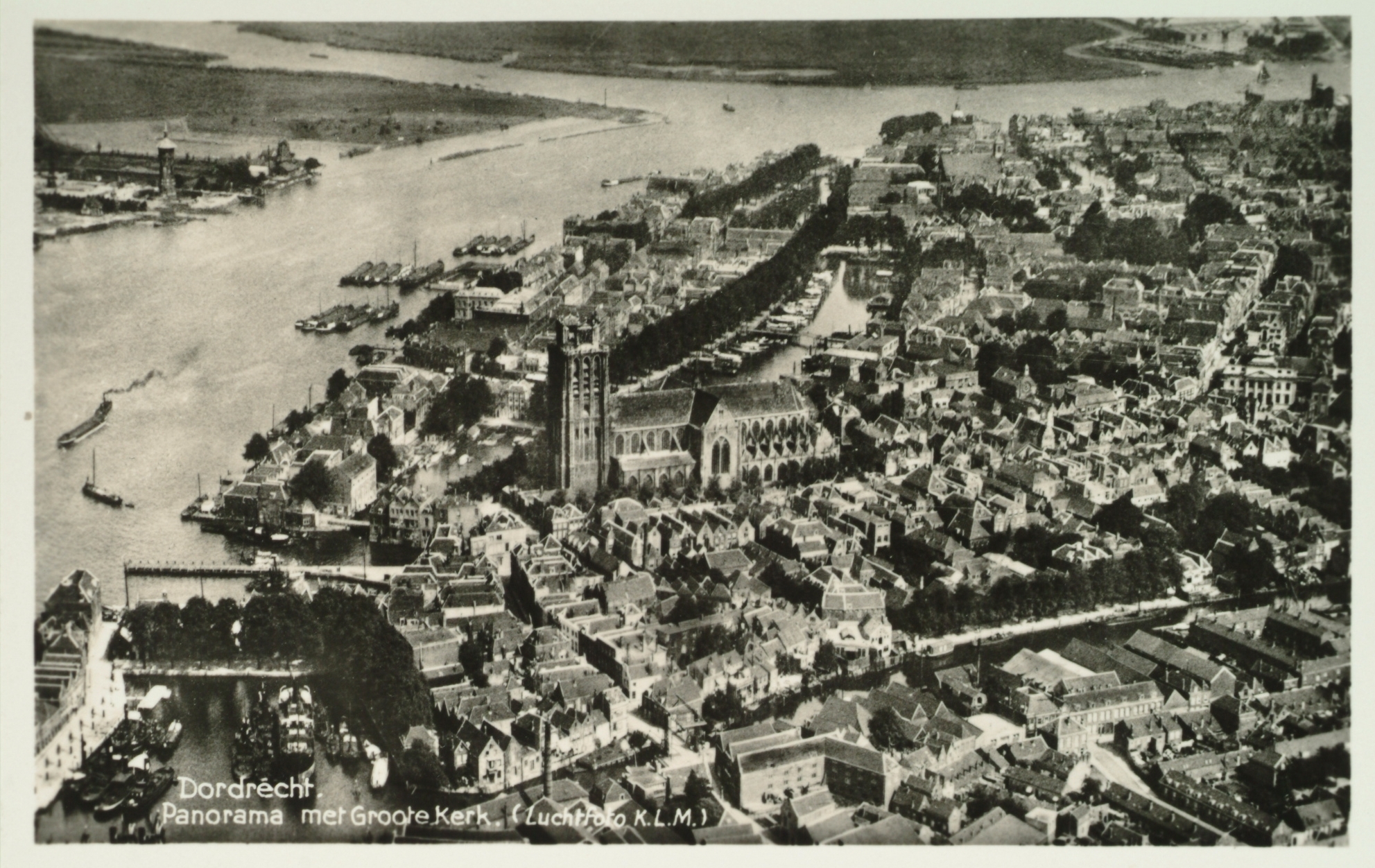 Luchtfoto van Grote Kerk omstreeks 1925.