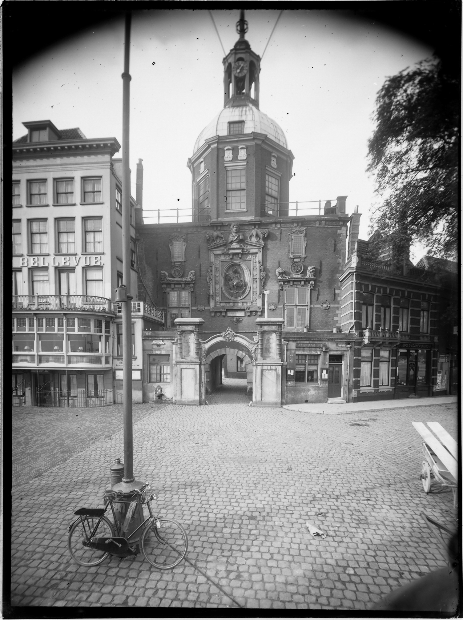 - Groothoofd met links hotel Bellevue, centraal de Groothoofdspoort met rechtsonder politiepost nr. 3