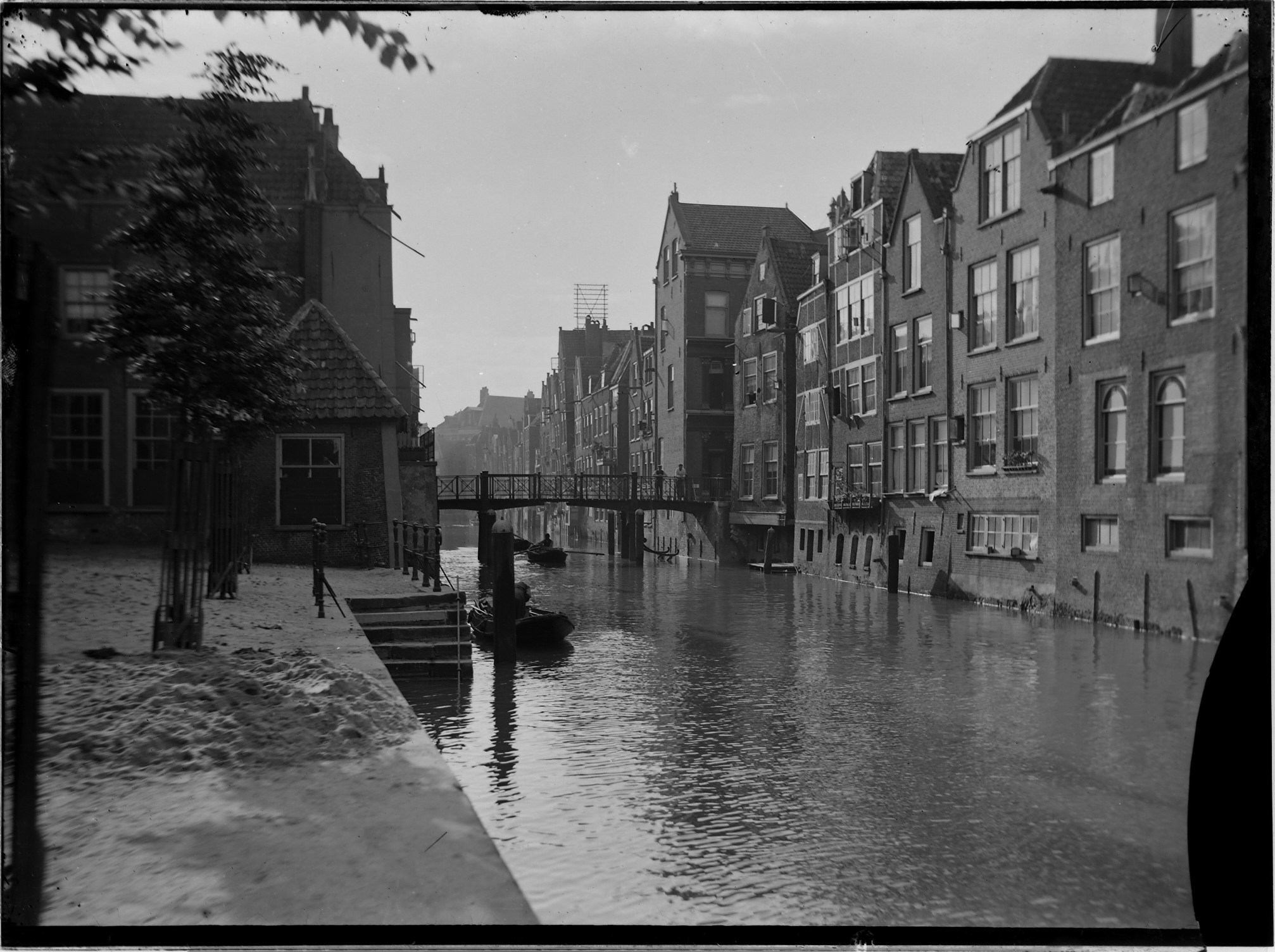 - Voorstraatshaven en Pelserbrug gezien vanaf de besneeuwde Pottenkade