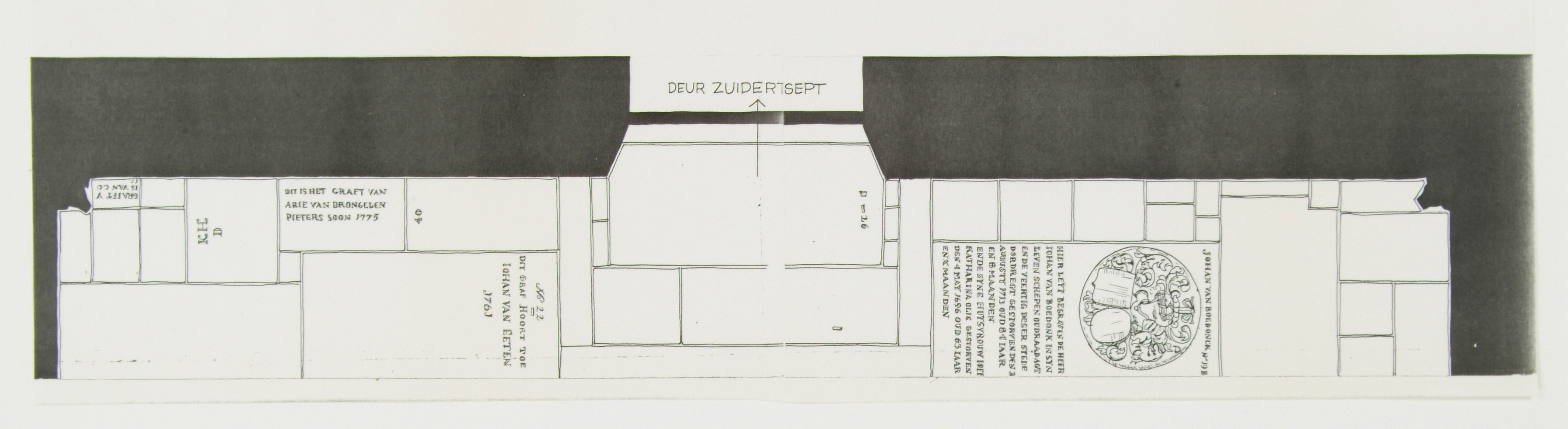 Plattegrond in 8 delen van de grafstenen in de zuiderzijbeuk en de kapellen van de …