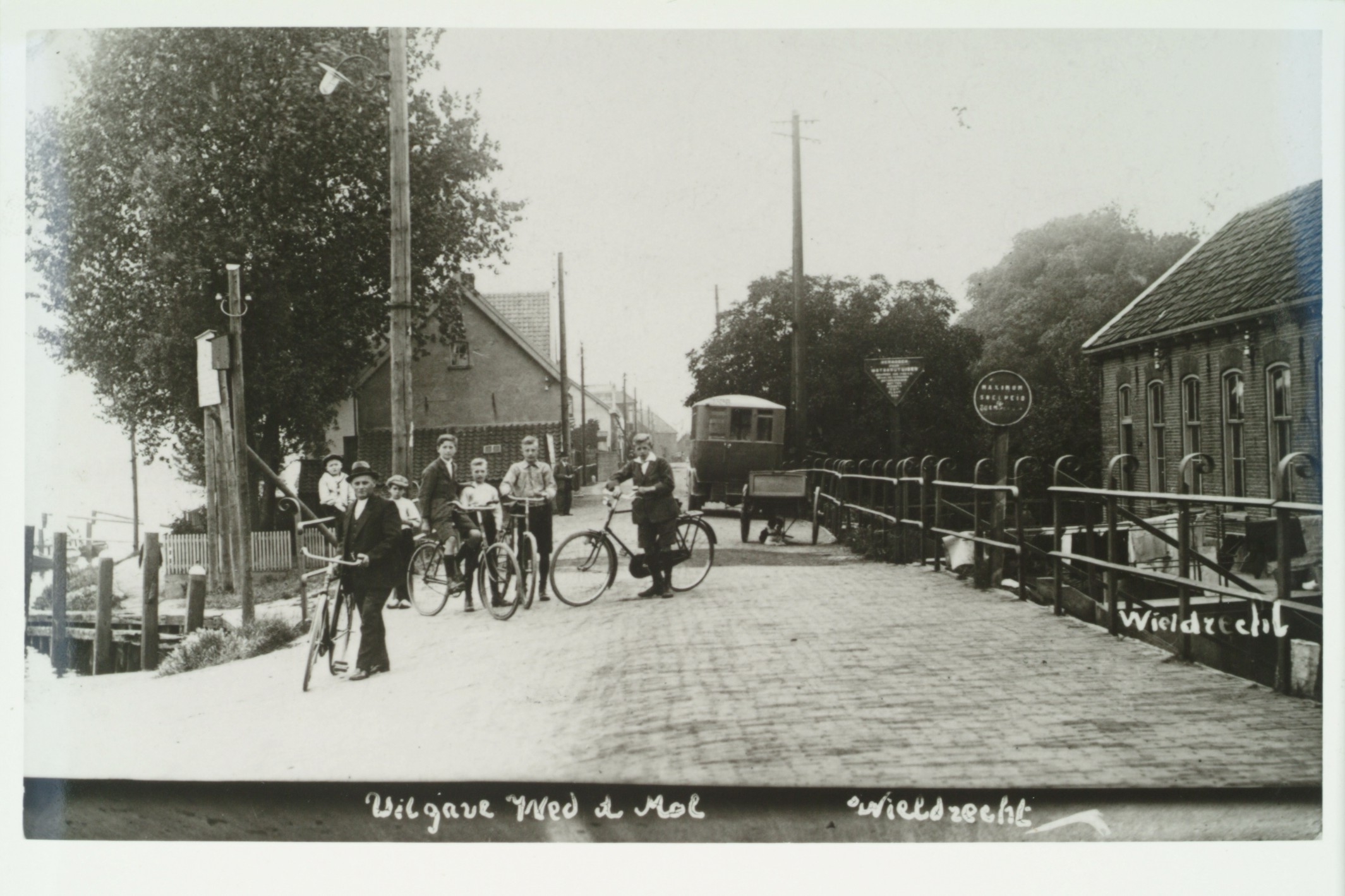 elektriciteitspalen / telefoonpalen fietsen / rijwielen hondenkarren voetgangers