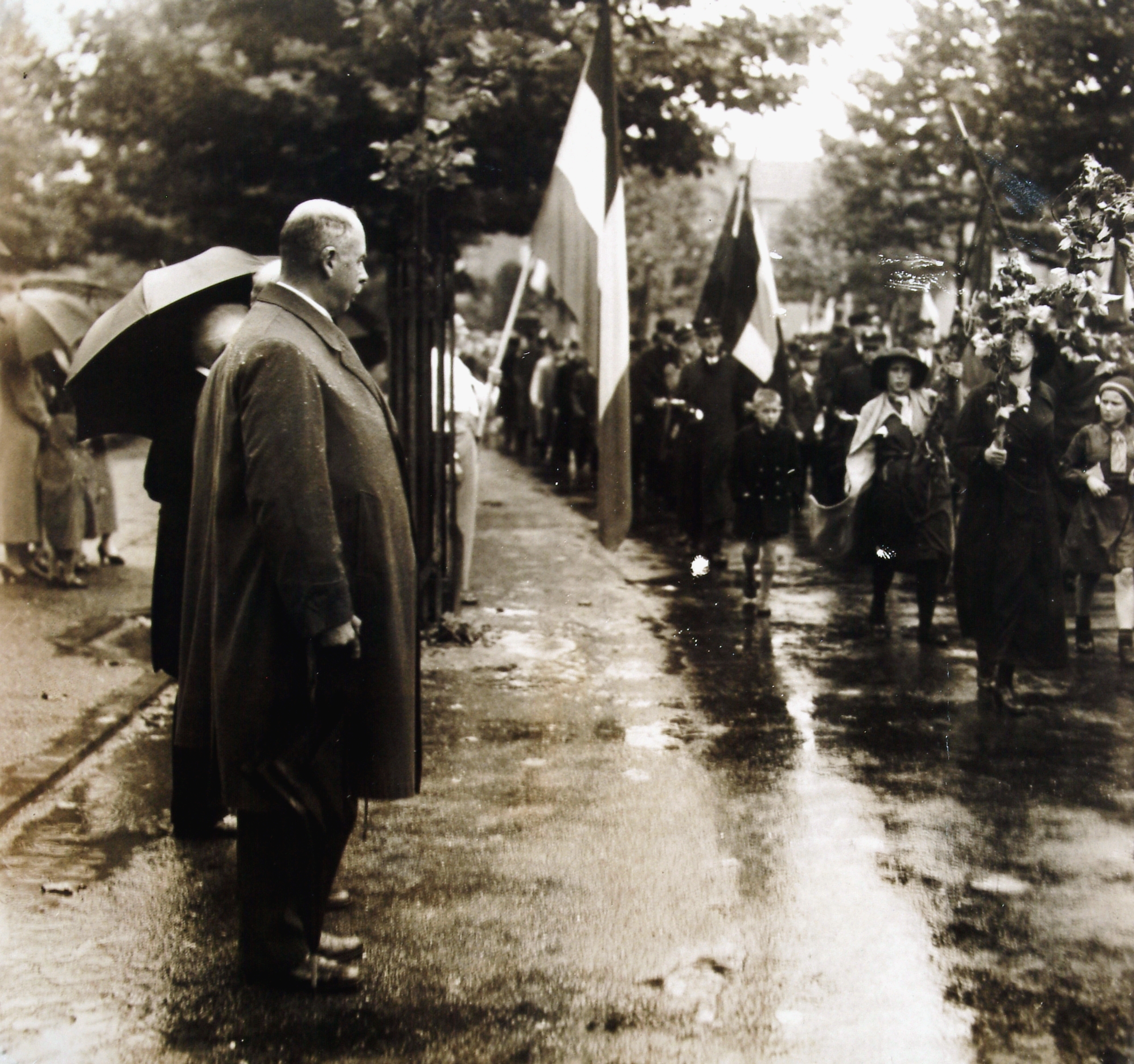 - burgemeesters defilés Koninginnedag optochten vlaggen(stokken)