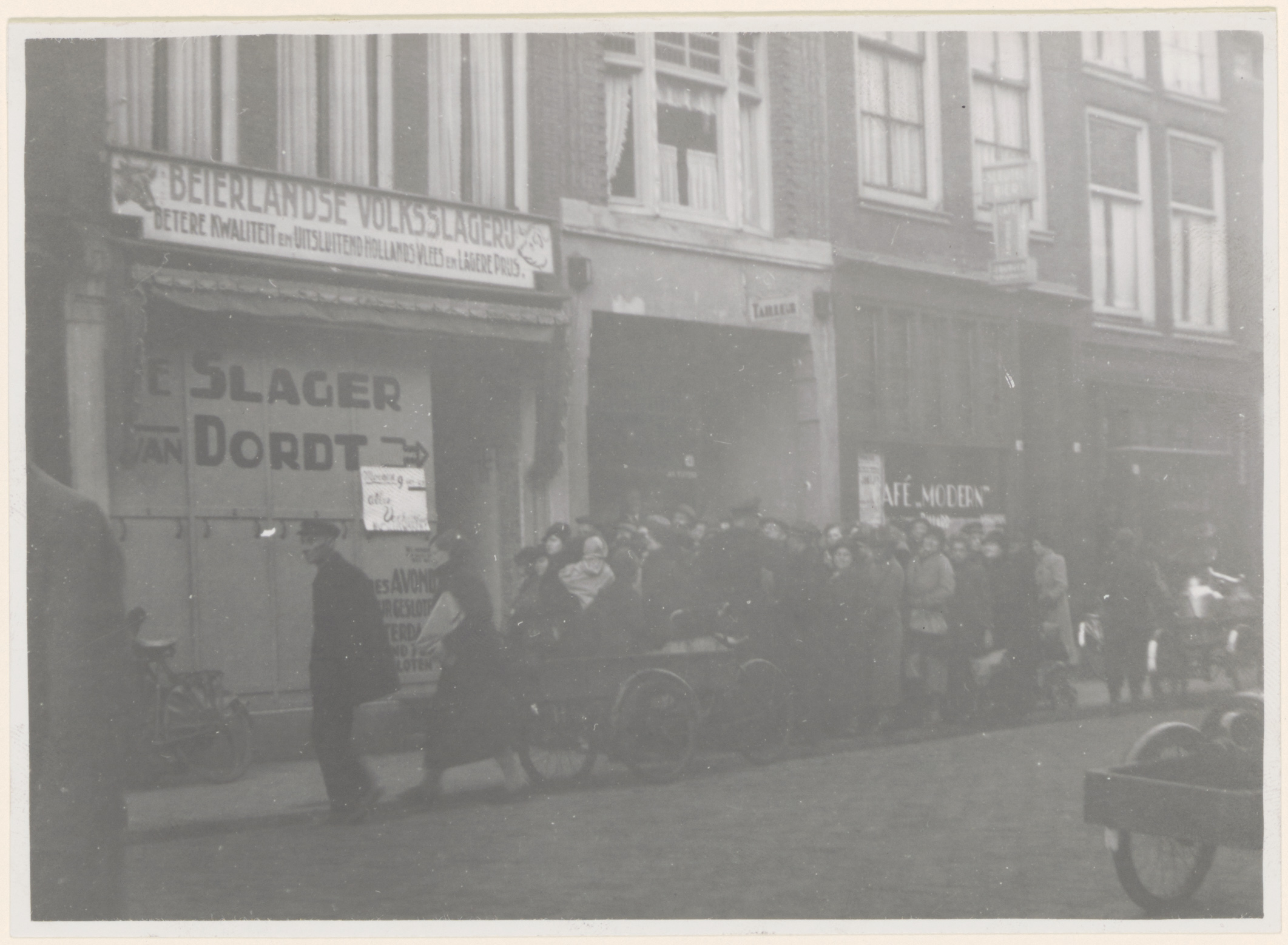- Het vlees wordt schaars in de Tweede Wereldoorlog. "Nieuwe orde, lege borde(n)". Drukte bij de Beijerlandsche Volksslagerij op de Voorstraat.